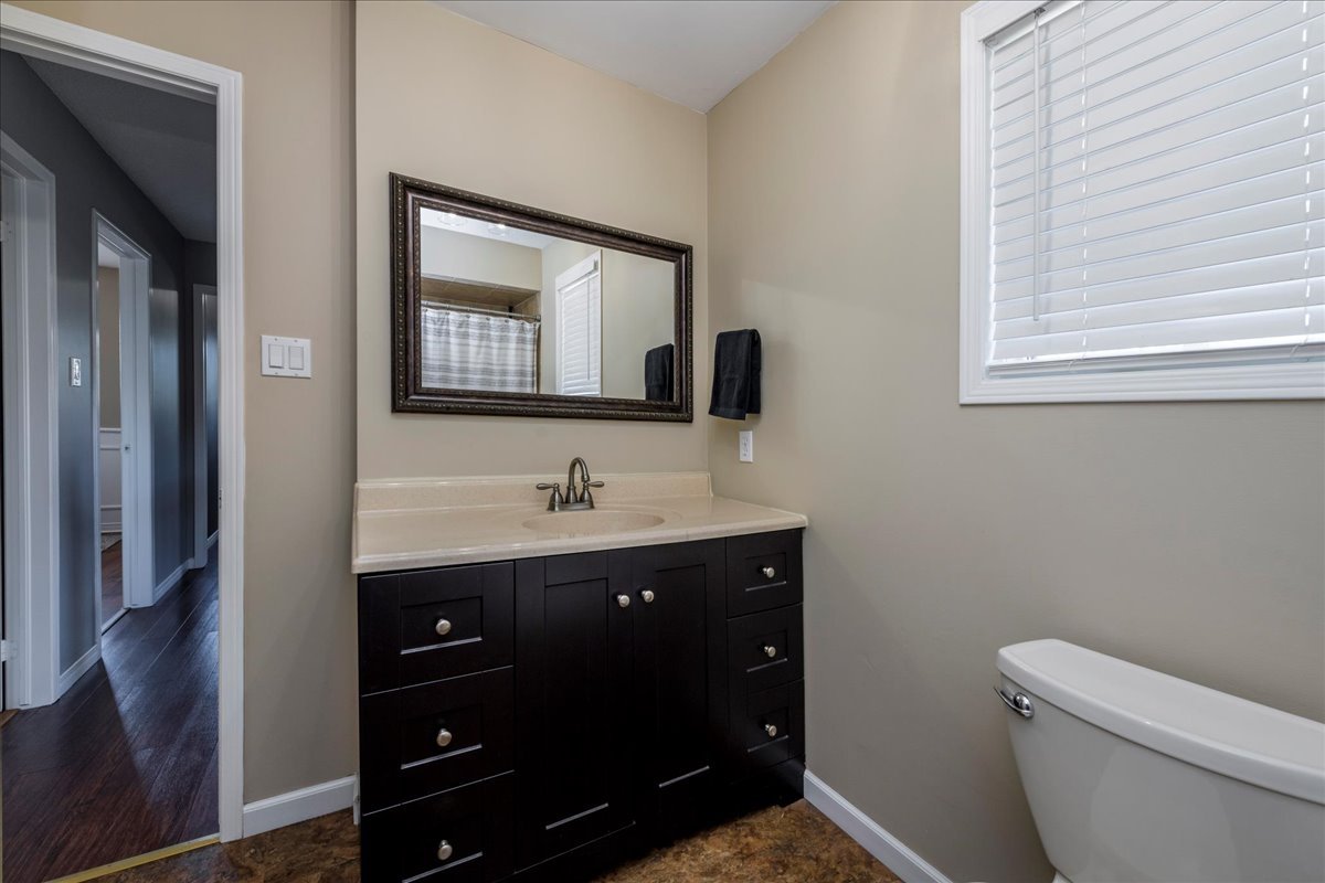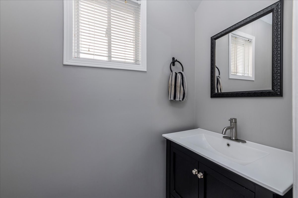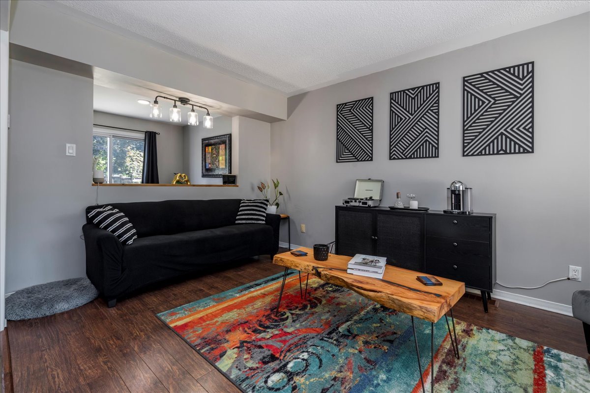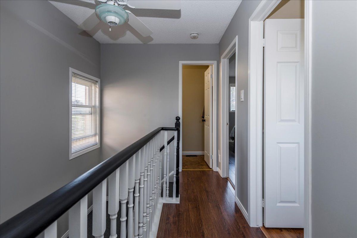 Charming 1,250 Sq. Ft. Two-Story Home on a Quiet Crescent. Welcome to this beautifully maintained two-story home located in a peaceful, family-friendly crescent. Featuring 1,250 sq. ft. of stylish living space, this home offers comfort, functionality, and modern upgrades throughout. The main floor welcomes you with a ceramic-tiled foyer, a spacious front entry, and a bright living room with durable laminate flooring. A two-piece powder room adds convenience, while the updated kitchen boasts quartz countertops, a subway tile backsplash, and matching laminate floors. The dining area is perfect for family meals, with direct access to a large deck and a pie-shaped backyard ideal for entertaining or relaxing. Gas hookups are ready for your BBQ and stove. Downstairs, the finished basement features a generous rec room with a cozy gas fireplace, a custom bar with a kegerator, a laundry area, and a large storage closet. Upstairs has a fully renovated four-piece bathroom. The spacious primary suite spans the entire second floor, while two additional bedrooms offer ample space, all with laminate flooring. Additional features include a garage with an included fridge and great curb appeal in a quiet, established neighborhood. This move-in-ready home is the perfect blend of style and comfort.