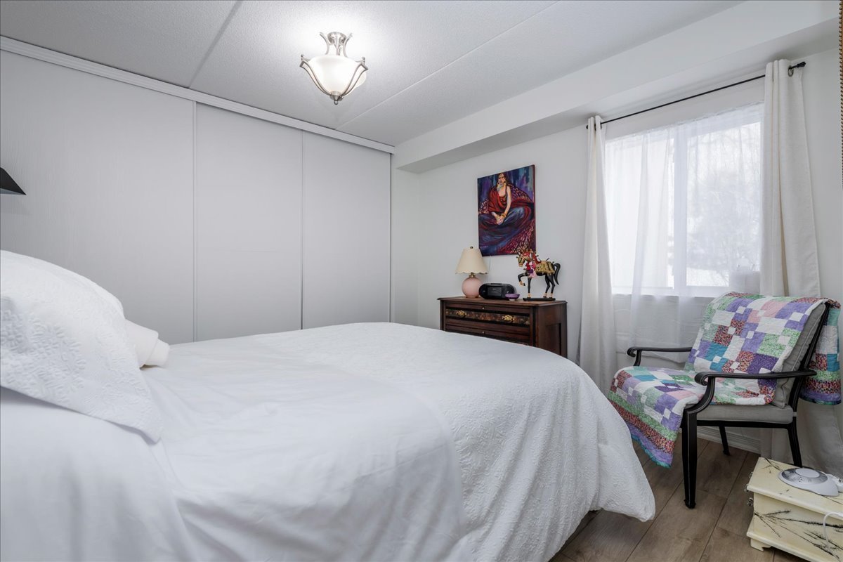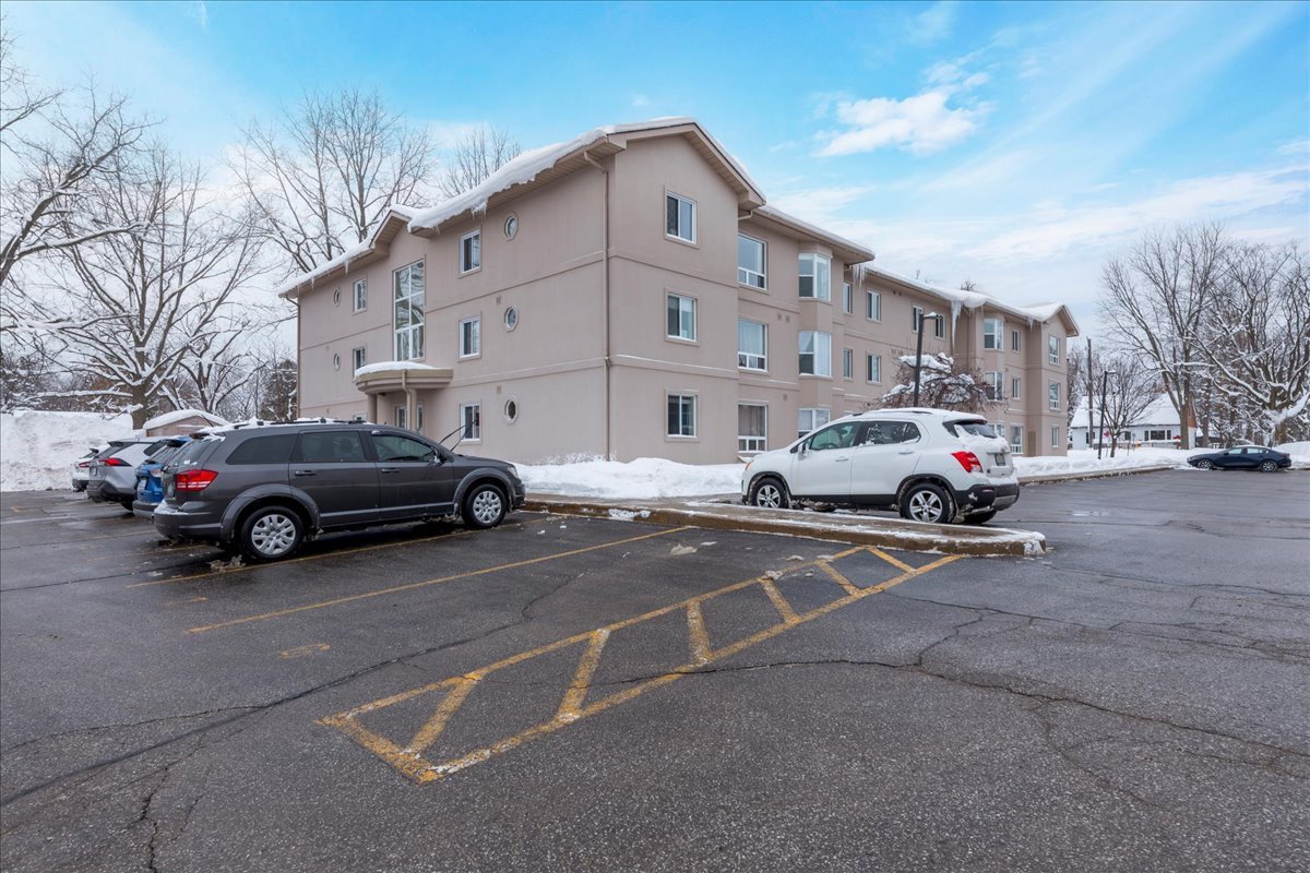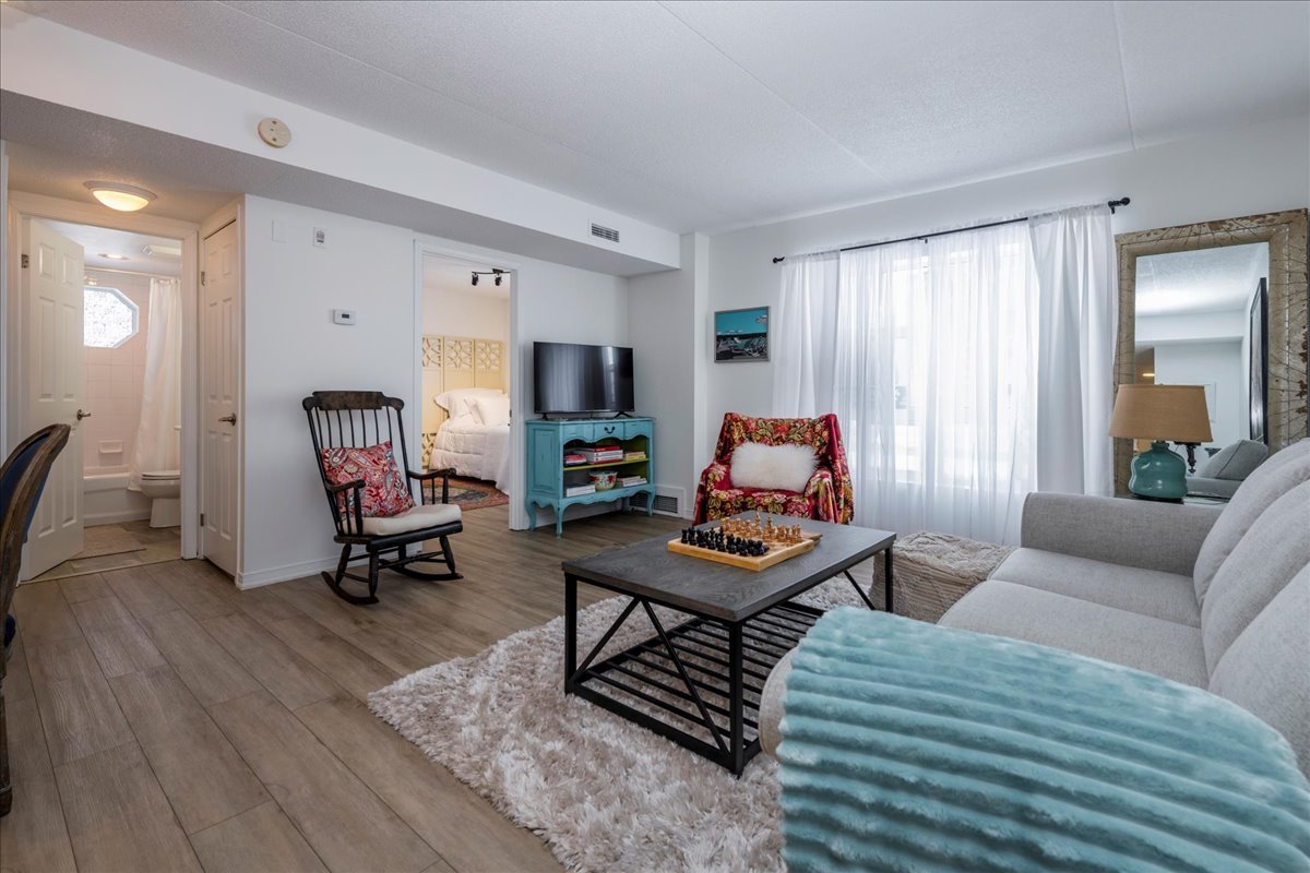 Step into a welcoming foyer with a closet and brand-new laminate flooring that flows seamlessly throughout the open-concept kitchen and living area. The bathroom and foyer feature coordinating laminate tile for a clean, modern look. The spacious primary bedroom offers a large closet plus an additional storage closet, while the second bedroom is generously sized with a large closet of its own. The unit is heated by a natural gas furnace and is truly turnkey-move in and enjoy. Located on the main floor, this 2-bedroom, 1-bathroom condo includes one assigned parking spot along with ample visitor parking. Affordable condo fees add to the appeal. Residents have access to a shared coin laundry conveniently located just two doors down, and the main entrance features a secure key fob entry system. Set in a fantastic location close to shopping, Lake Couchiching Beach, and Lake Simcoe, this condo offers comfortable, low-maintenance living in a highly desirable area.