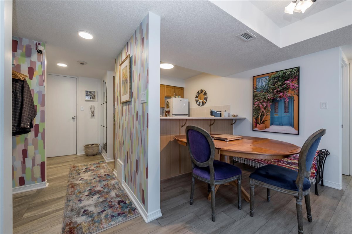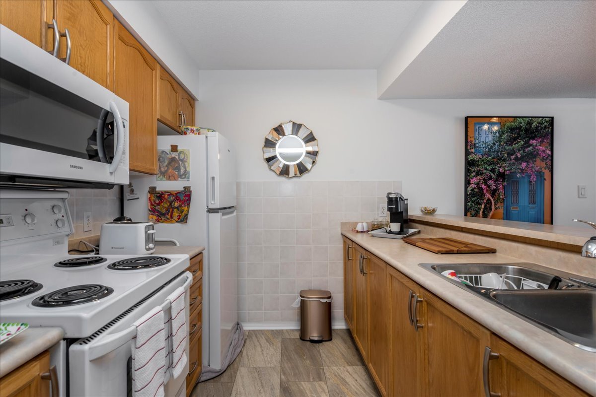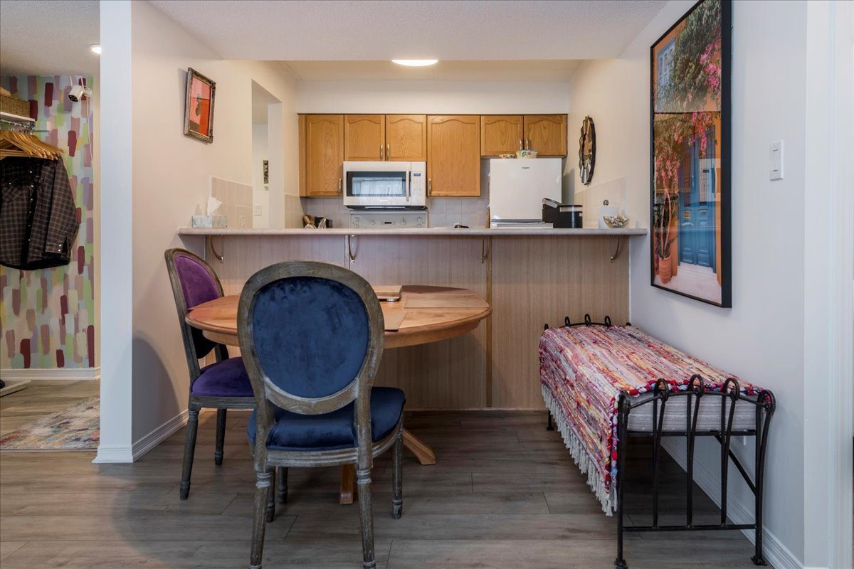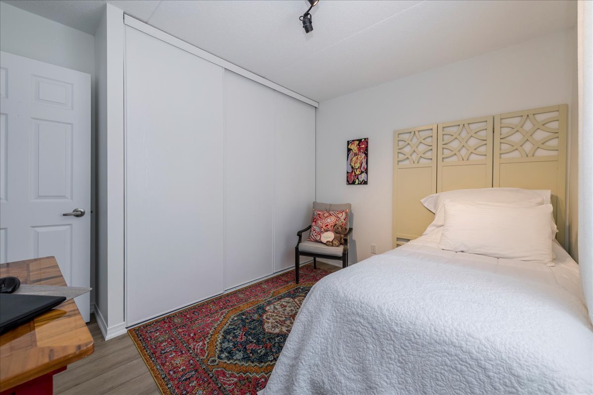 Step into a welcoming foyer with a closet and brand-new laminate flooring that flows seamlessly throughout the open-concept kitchen and living area. The bathroom and foyer feature coordinating laminate tile for a clean, modern look. The spacious primary bedroom offers a large closet plus an additional storage closet, while the second bedroom is generously sized with a large closet of its own. The unit is heated by a natural gas furnace and is truly turnkey-move in and enjoy. Located on the main floor, this 2-bedroom, 1-bathroom condo includes one assigned parking spot along with ample visitor parking. Affordable condo fees add to the appeal. Residents have access to a shared coin laundry conveniently located just two doors down, and the main entrance features a secure key fob entry system. Set in a fantastic location close to shopping, Lake Couchiching Beach, and Lake Simcoe, this condo offers comfortable, low-maintenance living in a highly desirable area.