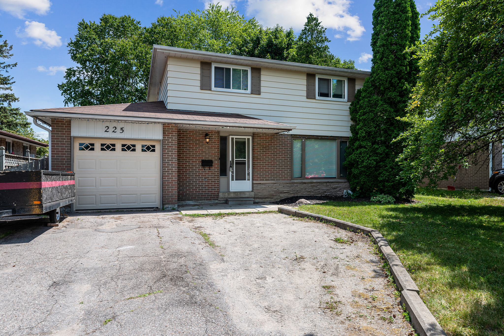 | Freshly updated 2 storey with single car garage in Barrie’s east end. This 6 bed 2.5 bath home is set up as a 4 bed home + 2 bed apt with separate entry and shared laundry. Upper unit has brand new kitchen entirely updated with hardwood and ceramic floors. The basement has a very spacious 2 bed apartment with a large living area & galley kitchen with laminate flooring. The roof is 10 years old, furnace is 15 and most windows are newer. Tenants are not on a lease and can easily vacate for vacant possession or keep them if desired. All situated on a spacious 50’x110′ lot close to college and hospital. Basement apt is perfect for a family member.