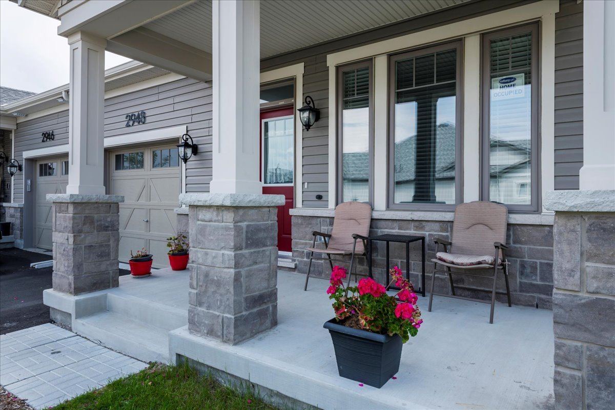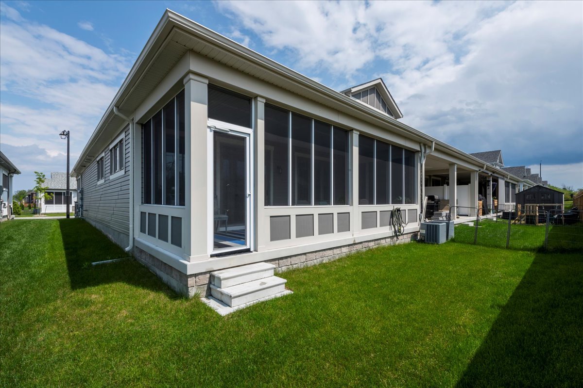 A welcoming entryway leads to a cozy retreat featuring 9-foot ceilings, open concept kitchen, living room and dinging room with stylish laminate flooring throughout. Enjoy convenient inside access to a generously sized garage, a dedicated furnace room, an efficient on-demand water heater, and in floor heating. This beautiful, nearly new home—only one year old—boasts a spacious kitchen complete with abundant cabinetry, sleek quartz countertops, stainless steel appliances (including fridge, stove, dishwasher and hood range), and a double sink. Just off the kitchen, you’ll find a well-appointed laundry area with a folding station, sink, and additional storage cabinets. The master bedroom is generously sized and features soft carpeting, while the en-suite showcases ceramic tile, a walk-through walk-in closet, and a glass walk-in shower with modern subway tile. Step out to your private, fully screened-in sun porch backing onto serene open fields. Enjoy added privacy and comfort with California shutters throughout.