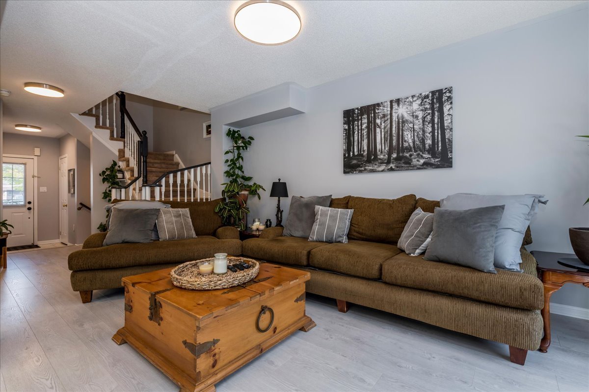 The main floor features an inviting open-concept layout with newer laminate flooring and plenty of natural light. Step outside to enjoy a private patio and yard, perfect for relaxing or entertaining, with easy access to the garage through both an exterior door and inside entry. Parking is convenient with space for two vehicles in the driveway plus one in the garage.