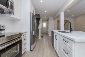 This beautifully remodeled, modern farmhouse décor home is ready and waiting for you. The open concept main floor has entrance wall unit, plenty of natural light, formal dining area, custom kitchen with NEW fridge, stove, dishwasher, built-in microwave, kitchen cupboards and gleaming quartz counter tops with back-splash. Upgraded vinyl plank flooring flows through the main floor and on the second where you’ll find 3 good sized bedrooms with large closets and NEW 4-pc bath with quartz countertop vanity, modern mosaics, and subway tile surround. In the basement you’ll find the family/rec room, large laundry room with NEW washer, dryer. The back yard is fully fenced with a deck and garden shed. Furnace, A/C, electrical, roof, plumbing & hot water tank all new in 2021. Just move in and enjoy everything this incredible home has to offer.