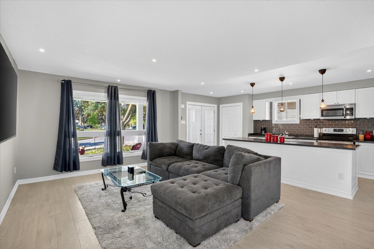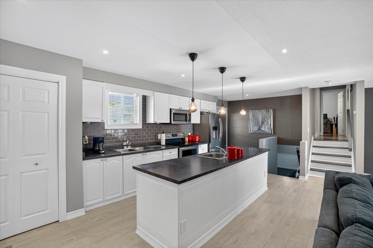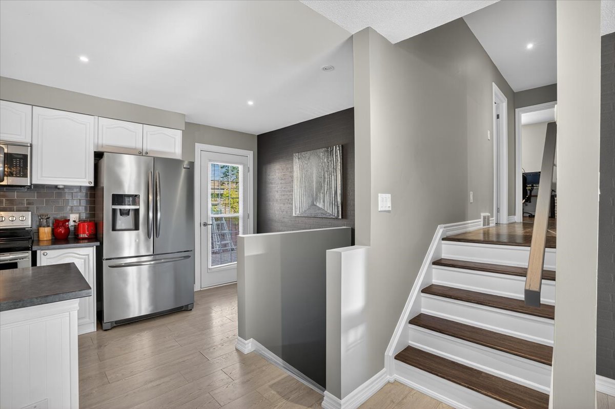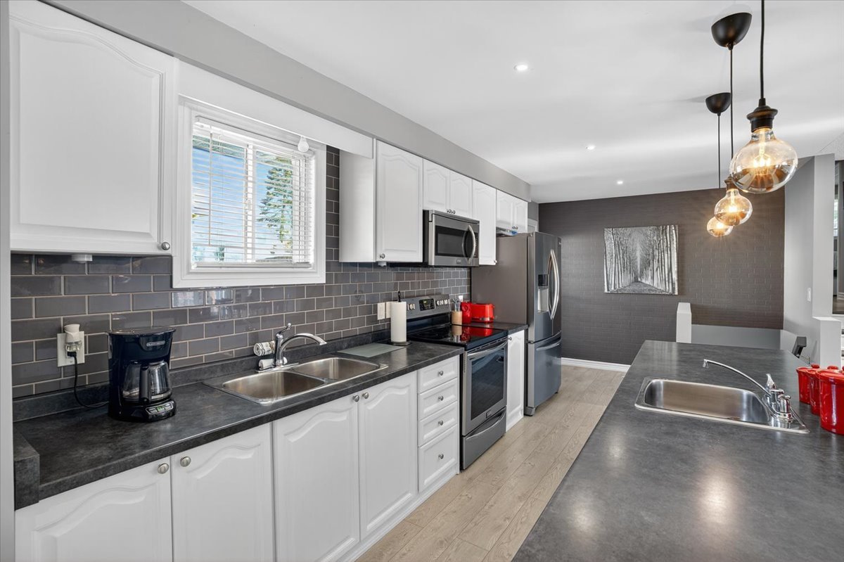 Tucked away on a quiet court, this beautifully updated home offers comfort, style, and space for the whole family. A large double driveway with room for four cars welcomes you, along with a charming unistone front patio. Step inside to a fully renovated interior, with major updates completed within the past six years, including the kitchen, furnace, AC, roof, and all backyard landscaping. The open-concept main floor is perfect for entertaining, featuring a stunning kitchen with a huge island, sleek laminate flooring, and five brand-new stainless-steel appliances: fridge, stove, built-in microwave, dishwasher, and wine fridge. Upstairs you’ll find three spacious bedrooms, all with laminate flooring. The primary suite includes a modern three-piece ensuite and a custom open-concept closet with organizers. The lower level offers a cozy gas fireplace, a fourth bedroom, a two-piece bath, laundry, and generous storage space. The oversized two-car garage provides direct access to a side deck with pergola, leading to a private backyard designed for both relaxation and fun. Enjoy a large storage shed, a fire pit area with bar, and plenty of room for gatherings. Move-in ready and thoughtfully upgraded, this home is a rare turnkey opportunity in a peaceful, family-friendly setting.