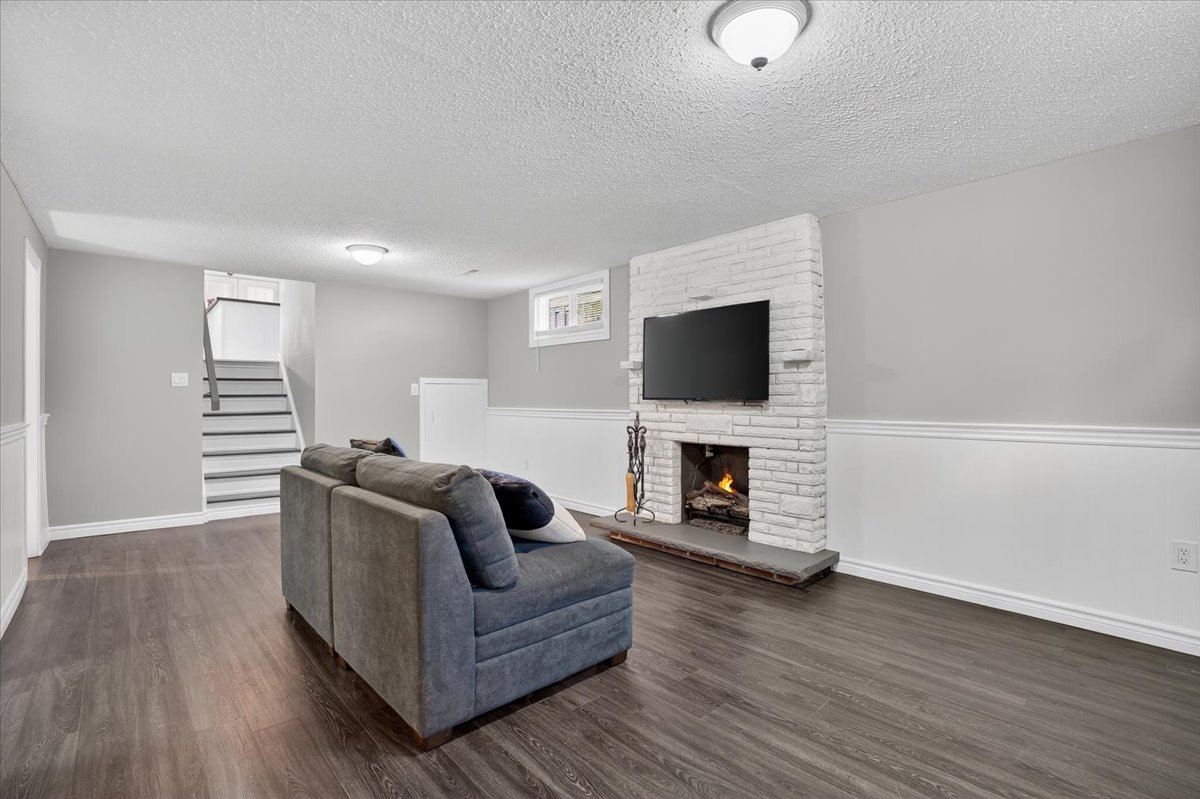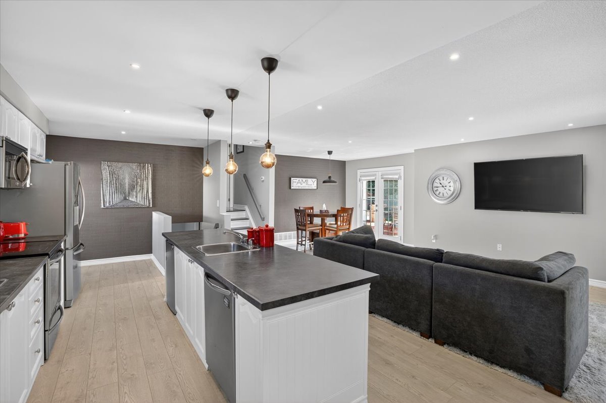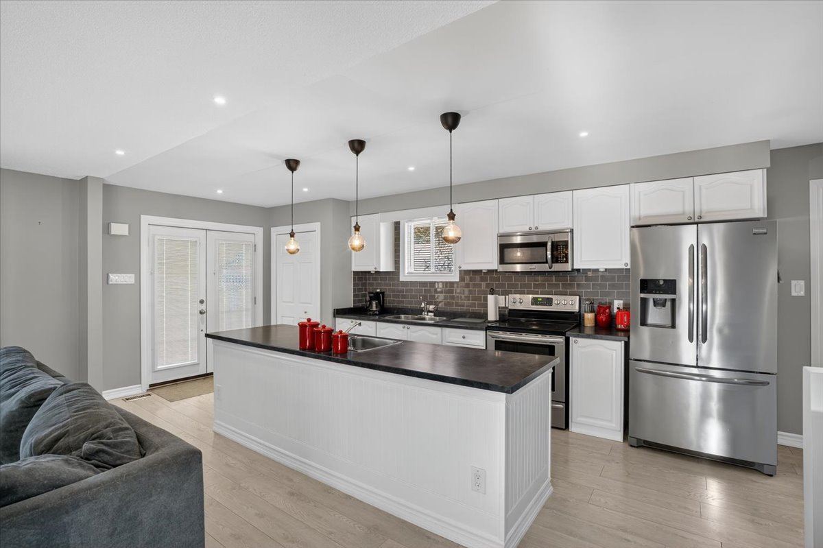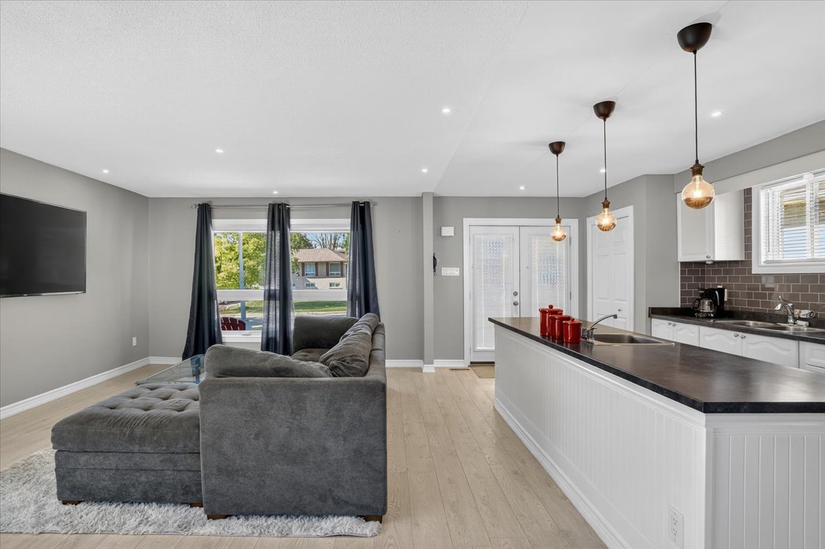 Tucked away on a quiet court, this beautifully updated home offers comfort, style, and space for the whole family. A large double driveway with room for four cars welcomes you, along with a charming unistone front patio. Step inside to a fully renovated interior, with major updates completed within the past six years, including the kitchen, furnace, AC, roof, and all backyard landscaping. The open-concept main floor is perfect for entertaining, featuring a stunning kitchen with a huge island, sleek laminate flooring, and five brand-new stainless-steel appliances: fridge, stove, built-in microwave, dishwasher, and wine fridge. Upstairs you’ll find three spacious bedrooms, all with laminate flooring. The primary suite includes a modern three-piece ensuite and a custom open-concept closet with organizers. The lower level offers a cozy gas fireplace, a fourth bedroom, a two-piece bath, laundry, and generous storage space. The oversized two-car garage provides direct access to a side deck with pergola, leading to a private backyard designed for both relaxation and fun. Enjoy a large storage shed, a fire pit area with bar, and plenty of room for gatherings. Move-in ready and thoughtfully upgraded, this home is a rare turnkey opportunity in a peaceful, family-friendly setting.