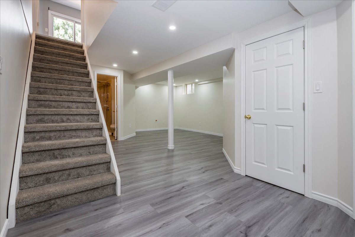 Step down to the fully finished basement, where brand-new carpeted stairs lead to new laminate flooring throughout. This level includes a huge bedroom, large laundry area, a stylish bathroom with a glass shower, and a generous rec room with a rough in for a wet bar perfect for entertaining or relaxing.