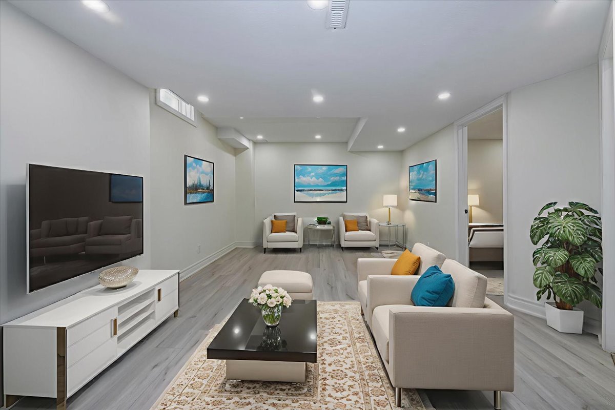 This beautiful home offers a fully finished basement featuring a bedroom with laminate flooring, a modern three-piece bathroom with a ceramic-tiled shower and glass doors, a furnace/storage room, a cold cellar, and a hardwood staircase leading to the main floor. The main level showcases hardwood flooring throughout, except in the bathroom, laundry room, and foyer. A spacious front entry welcomes you with a large closet, and the laundry room provides convenient access to the garage. The living area includes a cozy gas fireplace and a large picture window overlooking the ravine, along with sliding doors that open to a stone patio perfect for indoor-outdoor living. The updated kitchen boasts stainless steel appliances and elegant quartz countertops. A hardwood staircase with wrought iron pickets leads to the second floor, which is also finished in hardwood, excluding the bathrooms. The primary bedroom is expansive and features a luxurious five-piece ensuite with a soaker tub, ceramic shower with glass doors, and backlit vanity mirrors. The main bathroom is also a five-piece and finished with premium 2 x 2 tiles used consistently throughout the home. The second and third bedrooms are generously sized, one offering a beautiful picture window overlooking the front court. The home sits on a quiet, pie-shaped lot in a highly desirable neighborhood close to shopping, schools, and quick access to Highway 400.