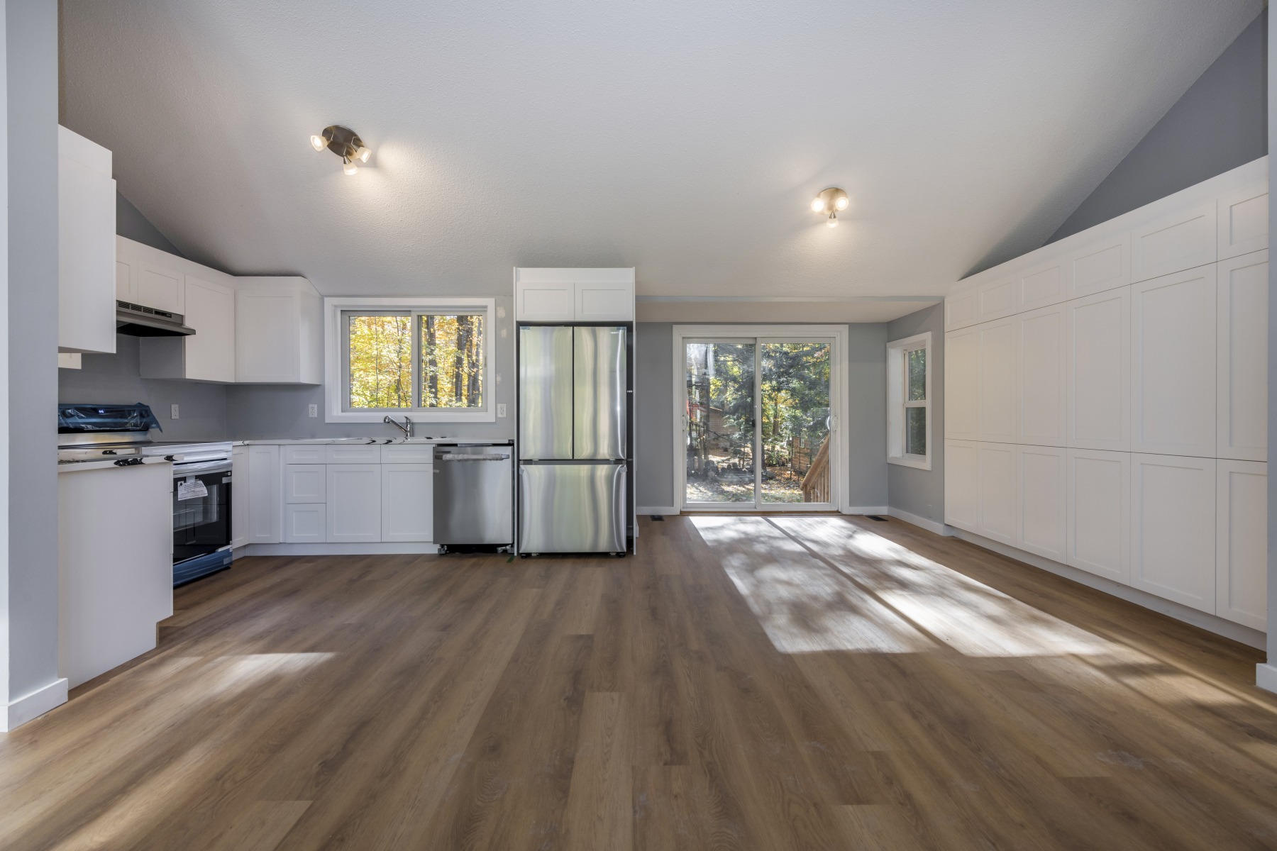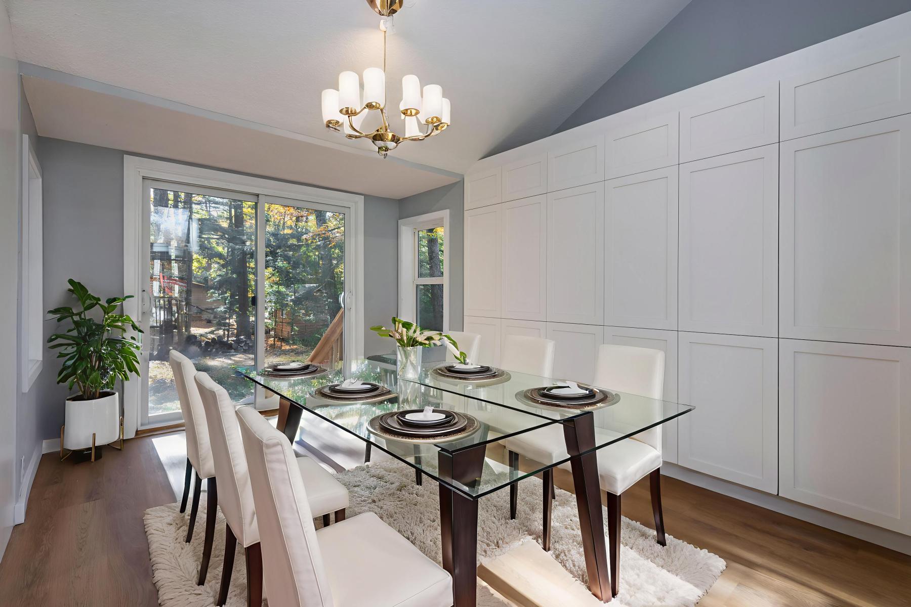 Welcome to this beautifully refurbished Viceroy-style home, just steps from the lake and Tiny Township prestige beaches. Designed with an open-concept layout, this bright and spacious property is filled with natural light from its many windows and features soaring cathedral ceilings that create a sense of airiness and warmth. Every detail has been thoughtfully updated, offering the perfect blend of modern luxury and classic charm. The home includes one full four-piece bathroom and one convenient two-piece bathroom, both brand new and finished with elegant quartz countertops and contemporary fixtures. The kitchen is a showpiece with quartz surfaces and tons of cupboards, brand-new stainless-steel appliances, and an open flow that makes it ideal for cooking and entertaining. New wide plank laminate floors, new ceramics and two new sliding doors. Two attic lofts provide additional space that can be used as playrooms, storage, or cozy reading nooks, giving the home extra versatility and character.