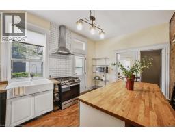 Welcome to this enchanting Victorian-style semi-detached home, where timeless character meets contemporary comfort and old-world charm. Built in 1870, thoughtfully updated throughout, this 3+1 bedroom, 2 bathroom gem offers the best of both worlds in the heart of Central South— one of the city’s most vibrant, walkable, and sought-after neighborhoods. You'll be captivated by soaring ceilings, exposed brick, and warm maple hardwood flooring throughout the first and second levels—completely carpet-free. Natural light pours in the dining room through the large bay window, creating an inviting space for special gathers. The spacious living room flows seamlessly into a chef-inspired kitchen. Butcher block countertops, a subway tile backsplash, an oversized island, stainless steel appliances, and ample cabinetry—perfect for the avid cook. Just beyond, a flexible office or additional dining area overlooks a newly stained deck—ideal for BBQs and entertaining. Upstairs, a newly updated staircase with iron balusters leads to three generously sized bedrooms and a stylish 4-piece bath. The finished basement adds more versatility, offering a fourth bedroom, updated 3-piece bath with a glass shower, pot lights, and durable laminate flooring—great a home office, or extra living space. Enjoy the tidy, landscaped lot with a low-maintenance backyard oasis and private deck. With rare private 2-car parking off of Hess St N, perfect for families or young professionals who enjoy the convenience in the lower escarpment area. Just steps from downtown’s most exciting events—including Supercrawl and the Farmers’ Market. Close to James St. North, seconds to Locke Street, and Hess Village, all known for their eclectic restaurants, boutique shops, and cultural spots. Minutes to the GO Station, GO Bus, First Ontario Centre, and highway access for easy commuting. Don’t miss your chance to own this historic modern-day masterpiece in the heart of where everyone wants to be. Book your showing today! (id:50886)