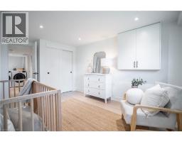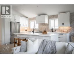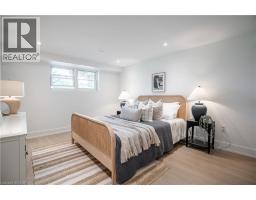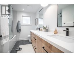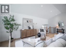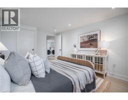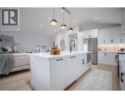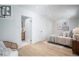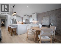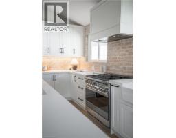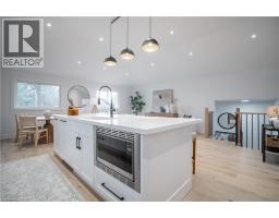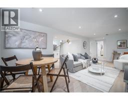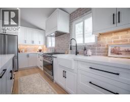 No detail has been overlooked in this absolutely breathtaking 4-bedroom, 3-bath, 2-kitchen raised bungalow, situated in the prestigious Tyandaga community! From the freshly painted exterior to the custom arched oak wood front door, this home makes a stunning first impression. Step inside to a foyer full of character, featuring timeless checkered tile flooring and a convenient coat closet at the end of the hall. Upstairs, every finish is custom-crafted, from the engineered hardwood floors and vaulted ceilings with pot lights to the designer kitchen showcasing an 8-ft island, SMEG stainless steel appliances, and solid wood cabinetry. The elegant backsplash flows seamlessly into the dining area, which offers ample seating and overlooks the spacious living room, the perfect spot to cozy up for family movie nights or cheer on your favourite team this winter. Down the hall, the primary suite is a true retreat, complete with sliding doors to a private balcony overlooking the backyard, custom built-in oak closets, and a luxurious 3-piece ensuite. A second bedroom (currently used as an office) and a stunning 4-piece bathroom with dual sinks, quartz countertops, and a custom vanity complete the upper level. The lower level offers even more living space with a beautiful family room featuring a stone fireplace, a second kitchen ideal for a potential in-law suite, two additional bedrooms, laundry, and another elegant 4-piece bathroom. Step outside to your own private oasis: a fully fenced backyard with a brand-new wooden deck, stone patio, and lush green space surrounded by mature trees. Additional highlights include a brand new instant water heater, a double driveway with single-car garage, updated lighting throughout, and a 2019 roof. Located in the highly sought-after Tyandaga neighbourhood, known for its tree-lined streets, golf course, and close proximity to parks, trails, top-rated schools, and all amenities, this home truly offers the best of Burlington living. (id:50886)