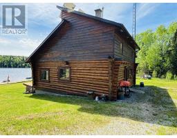 Seize the opportunity to own a breathtaking property with pristine 66' sand beach shoreline on the prestigious Cliff Lake. Located in unorganized territory, just 20 minutes south of Perrault Falls, this idyllic retreat is a dream come true for outdoor enthusiasts and nature lovers alike. Enjoy unparalleled fishing and the serene tranquility that only nature can provide. This remarkable property features a stunning log home built in 1988, showcasing cedar shank siding on the upper level. Spanning over 1,800 sq. ft., the home is fully insulated and designed for comfort. On the main level, you'll be greeted by a spacious entryway leading to a versatile office room. The open-concept kitchen, dining, and living area boasts beautiful hardwood flooring throughout. The living room is anchored by a striking dual-sided fieldstone fireplace, perfect for cozying up in the primary bedroom or relaxing in the living space. The main level also includes a luxurious full bathroom, complete with a jetted tub, a stand-up shower, and a his-and-her vanity. Upstairs, you'll find a generous family/study area that opens onto a charming three-season sunroom with a walk-out balcony, offering stunning views of the lake. The second level also features a spacious bedroom and a utility room. The property comes with several outbuildings, including a generator shed, a detached garage, and a sauna hut, enhancing your outdoor living experience. Don't miss this chance to own a slice of paradise on Cliff Lake. Your dream property awaits! (id:50886)