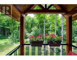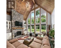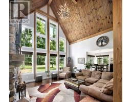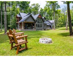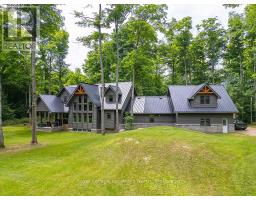 Private sanctuary on 25 acres of serene Meaford countryside, where mature trees and tranquility await. This custom-built retreat offers a blend of luxury and comfort, designed to embrace the beauty of its natural surroundings. A short drive to Downtown Meaford and Georgian Bay. Step inside to discover the heart of the home a great room with vaulted wood-covered ceilings, floor-to-ceiling windows framing views of majestic trees, and a striking stone surround fireplace. The open concept gourmet kitchen features granite counters, a 4ft range, built-in microwave, bar fridge in the island, and a convenient pot filler. Adjacent is the dining space with a walkout to the back deck, perfect for alfresco dining. The main floor also hosts a guest bed, den space, convenient laundry room and mudroom with access to the oversized garage. Throughout the main floor,3/4 inch special walnut plank flooring adds warmth and elegance. All bathrooms are beautifully appointed with granite counters and heated flooring beneath polished ceramic tiles. Upstairs, the upper level offers additional living space with a primary suite, guest bed, 3pc bath, and a versatile bonus room. The spacious primary suite features a covered balcony overlooking the lush grounds, WIC, and a luxurious 3pc ensuite complete with heated floors, heated towel rack and a freestanding tub. Additional features include a durable steel roof, a 10kw backup generator, and 1000sqft drive shed with 200 amp service offers plenty of storage for seasonal toys or use as a workshop! Above the garage, a loft area offers storage or potential studio. The lower level has potential for a huge rec space. Outside, the expansive and private exterior invites exploration and quiet contemplation, making this property an ideal weekend getaway or full-time residence. Just 8 mins from dtown Meaford's restaurants, shops, and Georgian Bay. Thornbury is a short 18-minute drive away. (id:50886)