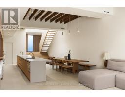 Welcome to the North Residence at 722 Lansdowne, a fully furnished Executive Mid-Term Rental located in Toronto's vibrant Junction neighbourhood. Designed by StudioAC, one of Canada's most celebrated architecture firms, this luxurious 2 bed, 2 bath home is a perfect balance of heritage, innovation, serenity and refined opulence. The interior features a monochromatic palette of limewash painted walls, micro-cement floors, and solid white oak millwork. The main floor opens to a double height atrium and a monumental dining, kitchen and living space. Original exposed rafters and brickwork nod to the building's history, while curated stone surfaces bring elegant modern craftsmanship to every detail. A centre courtyard and expansive rooftop terrace provide this home with a connection to nature and light. The huge primary suite has a spa like en suite with a walk out to a signature Japanese maple courtyard. Fully furnished with a King bed in the primary, Queen bed in the second bedroom, sectional couch, dining table, dining chairs and accent furniture. All appliances, equipped kitchen, gym equipment, built in office, gas bbq & secure interior parking. (id:50886)