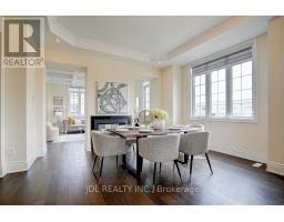 Welcome to this spectacular 6-year new detached home, perfectly situated on a premium corner lot in one of Pattersons most coveted neighborhoods. Designed with modern upgrades and timeless elegance, this residence offers a harmonious blend of comfort, style, and functionality. Step into a grand foyer with double-entry doors and sleek porcelain floors that set the tone for the homes sophisticated design. Boasting 10-ft ceilings on the main floor, 9-ft ceilings upstairs and in the basement, and an airy open-concept layout, the home is filled with natural light throughout. The main floor office impresses with soaring 11-ft ceilings, while the elegant living and dining room features a double-sided gas fireplace, creating a warm and inviting atmosphere. The heart of the home is the modern custom kitchen, all upgraded to built-in JennAir appliances, stone countertops, a center island with breakfast bar, and a spacious eat-in area that opens to the backyard. An adjoining family room with a coffered ceiling and southeast exposure provides the perfect space for gatherings, enhanced by pot lights and rich 5" Eng hardwood floors throughout. Upstairs, this family-friendly home offers 4 spacious bedrooms and 3 full bathrooms, including a primary retreat with a 5-piece spa-inspired ensuite featuring an oversized seamless glass shower, double vanities, and sleek porcelain finishes. Convenient 2nd floor laundry adds modern practicality. The finished basement extends the living space with a large recreation room, an additional bedroom, and a sound-proofed Karaoke room, ideal for family fun and entertainment. Located steps from parks, scenic trails, boutique plazas, and directly across from Eagles Nest Golf Club. Just 5 minutes to Maple GO (ideal for commuters), Mackenzie Health Hospital, St. Theresa of Lisieux Catholic HS, Alexander Mackenzie HS, and major highways. (id:50886)