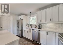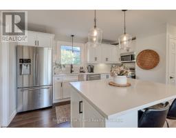 The One That Raises the Bar! At 1 Brickwood, style meets substance on a rare 0.27-acre cul-de-sac lot in Ingersoll's golf course district. This 4 bedroom, 2 bath home is meticulous, modern and move in ready. You'll love the covered front porch and tidy landscaping! The main floor sets the tone: a bright kitchen that's the true heart of the home, with sleek finishes, an island, chic pendant lighting, and generous eating area big enough for family dinners or weekend brunch. It flows into a sunlit living room anchored by a fireplace a statement feature that makes cozy evenings & lively gatherings even better. Patio doors extend the living space to a sprawling backyard escape with a large tiered deck, privacy fencing, shed & mature trees. A chic 2-pce bath elevates the main floor with its on-trend design. Upstairs, all four bedrooms keep everyone together, making mornings & bedtimes simple and connected. Each room is perfectly appointed not to mention comfortably sized, with space for desks, dressers, or quiet reading corners. The primary with its fashionable feature wall, easily holds a king suite, while the fully renovated 4-pce bath blends family function with sophisticated style. Downstairs, the vibe turns playful & practical. The rec room is large enough for movie marathons, game nights, or workout gear, finished with pot lights & built-in speakers for the perfect hangout. A bonus playroom with a sliding barn door & deep closet keeps toys tucked away. A generous garage with inside entry, parking for 6-7, updated windows & doors, 2100+/- SF of fresh, neutral, carpet-free décor add up to a home that's as functional as it is fabulous! Location seals the deal: less than 2 min. to 401, with London, Woodstock, Brantford & KW all within easy reach. Add the established neighborhood, the nearby amenities, the golf course around the corner, Harrisfield school district, the rec center & parks and its clear...If you've been searching for something special, this is The One! (id:50886)