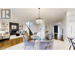 Welcome to 1 Dustan Crescent. This Custom built contemporary 4+1 bedroom, 5-bath home and 2 car garage w/ door to the house. The stately stucco-and-brick exterior is enhanced by beautifully maintained landscaping and a charming covered front porch. Inside, a bright tiled foyer opens to expansive 9ft ceiling principal rooms featuring rich hardwood floors. A front-facing sun filled office provides an ideal workspace overlooking a parkette. At the heart of the home lies the open-concept kitchen, breakfast area, and family room. The chef-inspired kitchen boasts sleek custom cabinetry, quartz countertops, premium appliances including a gas range, and a stunning waterfall island. The adjoining family room is anchored by a stone-surround gas fireplace, built-in shelving, and direct access to the backyard. Upstairs, the primary suite serves as a luxurious retreat with a Juliette balcony overlooking the yard, a two-way fireplace, a custom walk-in closet, heated floor spa-style 6-piece ensuite featuring a freestanding tub, double vanity, and glass-enclosed rain shower. Three additional bedrooms each showcase their own character-accent walls, and elegant lighting-accompanied by two beautifully designed full bathrooms. A stylish laundry room with mosaic backsplash , washer and dryer completes the 2nd floor for convenience. The finished basement with separate entrance adds exceptional versatility, offering a spacious recreation room, dining area, built-in kitchenette, private bedroom, 3-piece bath with walk-in shower, and a dedicated office space-ideal for guests, multigenerational living, or entertaining. Outdoors, the fully fenced backyard is a serene private escape, featuring dual-tiered decks, a stone patio, lush lawn, mature trees, and a garden shed-perfect for summer entertaining. Only 2 min walk to a park. Minute drive to DVP, a short drive to Downtown or Hwy 401 and close to future Ontario line. Don't miss this beautiful home where memories are waiting to be made. (id:50886)