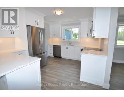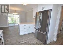 Welcome to this beautifully renovated 3-bedroom, 2-bathroom bungalow that blends comfort, convenience, and coastal charm. Just a short walk from the beach and swimming areas, this home is ideally situated on a peaceful cul-de-sac and backs onto untouched Township of Anabel land, offering serene views and privacy. Designed for easy one-level living, the spacious, open-concept layout includes a large living, dining, and kitchen area perfect for family gatherings and entertaining. The thoughtfully designed floor plan separates two cozy bedrooms and a full 4-piece bathroom from the private master suite, which features a walk-in closet and a 3-piece ensuite with a generous tiled shower. The garage has its own water tap, opens into a large foyer that connects to the laundry and utility room, adding functionality to the home. Enjoy quiet mornings on the charming covered front porch or relax on the expansive back deck during warm summer evenings. A scenic trail from the backyard leads directly to the public beach, providing effortless access to the water for swimming or simply soaking in the natural surroundings. Recently updated, the home includes six brand-new appliances, a new kitchen, new flooring, and fresh tile in both bathrooms. A large shed offers additional storage for outdoor equipment. Whether you're seeking a full-time residence, a family retreat, or a vacation escape, this turnkey bungalow delivers the perfect blend of lifestyle and location. (id:50886)