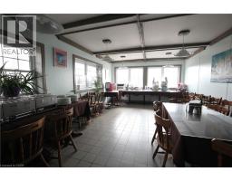 4 UNIT WATERFRONT OPPORTUNITY nestled in the picturesque harbour of Port Rowan, steps downtown to shops and restaurants. Sale includes two parcels. PARCEL ONE - two storey, 5864 sq. ft. building anchored by a restaurant on the main floor (3884 sq ft), licensed to seat 90 indoors and 48 on the patio. Features include walk-in cooler, gas range, 2 deep fryers, double oven, bar, coffee station, office, 2 accessible and 2 staff washrooms. Upper level with 1980 sq ft, quality re-built in 2003, features 3 residential units featuring spectacular harbour views, new LG heating/cooling units, cathedral ceilings, exit lighting, fire alarms and separate enclosed & secure apartment entry. PARCEL TWO - harbour lot, approx 100 ft. by 100 ft. includes parking for 11 cars and 98 ft. of water frontage with ownership of approximately 60+ ft. from the boardwalk into the water. Seawall, boardwalk with steel frame, pavilions on both ends plus six docks included (on site but not installed). Potential for additional income - houseboat/dock rentals, boat/sea doo rentals etc. Special Zoning - no required parking spaces to operate a restaurant however 13 spaces are available (2 accessible) and additional public parking nearby. Zoning allows for multiple uses - be your own boss and live at the waterfront, run a hotel, air bnb, restaurant, rentals etc. or make this your next waterfront investment. 2 hrs to Toronto and 1 hr 15 min to London. Sale does not include restaurant business. Can be purchased with adjoining property at 12 Sea Queen Rd. (id:50886)