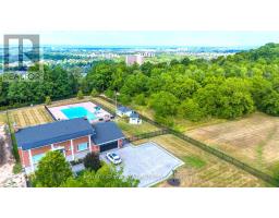 Perched atop the stunning Niagara Escarpment, this beautifully maintained home offers seasonal panoramic views of Lake Ontario and the Toronto skyline. Rarely available, it features over 5,100 sq. ft. of thoughtfully designed living space across three finished levels, with custom touches throughout. Enjoy private access to the Bruce Trail, with waterfalls and scenic hikes just steps from your backyard. The main floor features new hardwood floors, a custom staircase, and stylish lighting. A formal living room with a cozy wood-burning fireplace and an adjacent dining room set the stage for elegant entertaining. The chefs kitchen offers custom cabinetry and flows seamlessly into the family room with a new gas fireplace for added warmth and ambiance. Upstairs, find four spacious bedrooms, including a luxurious primary suite with a walk-in closet, spa-like ensuite, and private balcony. The bright, fully finished lower level includes large windows, custom woodwork, a new gas fireplace, a bedroom, and kitchenetteideal for a nanny, in-law, or multi-gen suite with its own entrance. Explore options to sever a second lot or build an auxiliary unit. Outside, your private oasis features a unique 30x60 in-ground pool (16 ft. deep), elegant wrought iron fencing, a charming pool house, and custom shedperfect for summer entertaining. Recent updates include new power blinds, 2023 HVAC systems, a refreshed porch, and pool/landscape upgrades. Enjoy nature and city convenience in this rare escarpment gem. (id:50886)