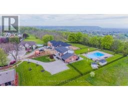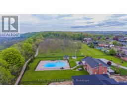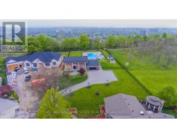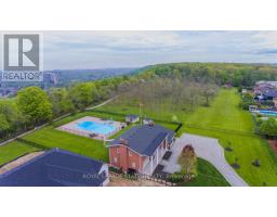 Perched atop the stunning Niagara Escarpment, this beautifully maintained home offers seasonal panoramic views of Lake Ontario and the Toronto skyline. Rarely available, it features over 5,100 sq. ft. of thoughtfully designed living space across three finished levels, with custom touches throughout. Enjoy private access to the Bruce Trail, with waterfalls and scenic hikes just steps from your backyard. The main floor features new hardwood floors, a custom staircase, and stylish lighting. A formal living room with a cozy wood-burning fireplace and an adjacent dining room set the stage for elegant entertaining. The chef's kitchen offers custom cabinetry and flows seamlessly into the family room with a new gas fireplace for added warmth and ambiance. Upstairs, find four spacious bedrooms, including a luxurious primary suite with a walk-in closet, spa-like ensuite, and private balcony. The bright, fully finished lower level includes large windows, custom woodwork, a new gas fireplace, a bedroom, and kitchenette-ideal for a nanny, in-law, or multi-gen suite with its own entrance. Explore options to sever a second lot or build an auxiliary unit. Outside, your private oasis features a unique 30x60 in-ground pool (16 ft. deep), elegant wrought iron fencing, a charming pool house, and custom shed-perfect for summer entertaining. Recent updates include new power blinds, 2023 HVAC systems, a refreshed porch, and pool/landscape upgrades. Enjoy nature and city convenience in this rare escarpment gem. (id:50886)