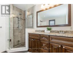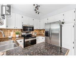 PRIVATE BACKYARD-Welcome to this beautifully maintained 4-bedroom, 4-bathroom home offering nearly 2,900 sq. ft. of finished living space. The main floor features a bright, open layout with a large front sitting room and formal dining area, both with hardwood flooring and oversized windows. The kitchen includes white cabinetry, tiled countertops and backsplash, stainless steel appliances, and an eat-in area with a walkout to the backyard. Across from the kitchen is a cozy family room with a wood-burning fireplace, perfect for relaxing evenings. The main level also includes a 2-piece bath and laundry room with convenient garage access. Upstairs, you'll find four generous bedrooms and an updated 4-piece bathroom. The primary suite features a 5PC ensuite with a soaker tub, glass walk-in shower, double vanity with granite counters, and ample storage.The fully finished lower level offers flexible living space with a large rec room, bar area, office nook, and an additional 2-piece bath ideal for entertaining or creating a home gym, playroom, or 5th bedroom. Step outside to an extremely private, fully landscaped backyard complete with an interlock patio, mature trees, and plenty of space for kids or pets to play. Plus, a hookup for a hot tub is already in place. Six car parking. A wonderful home for growing families in a desirable neighbourhood. (id:50886)
