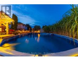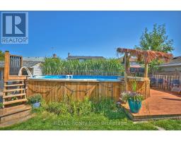 Welcome to this beautifully maintained, updated 2-storey home, offering fantastic curb appeal with its classic brick façade, covered front porch, and manicured landscaping. Step into the backyard oasis where entertaining and relaxation take centre stage. The expansive covered patio features a cozy seating area with a fire table and mounted TV, perfect for outdoor gatherings. A hot tub, newer above-ground pool with surrounding deck, and charming tiki-style bar create a true resort-like atmosphere right at home. Inside, an inviting, bright interior with new windows throughout features a spacious foyer, updated flooring, and a stunning kitchen with custom cabinetry, quartz counters, stainless steel appliances, and a large island. The dining area offers patio doors to the covered patio and flows seamlessly into a cozy living area anchored by a brick accented gas fireplace. This main-floor also features a separate large room perfect for a dining room, 4th bedroom, office, or whatever your needs desire. You will also find a conveniently located laundry room with custom cabinetry, and a 2 pc bathroom to finish off this lovely main floor. Upstairs has 3 generous sized bedrooms and 2 bathrooms. The primary suite provides a true retreat with room for a king bed and stylish décor, featuring a walk-in closet and ensuite, while the additional bedrooms add functionality and plenty of space. The basement is an entertainers dream and cozy family area, featuring a spacious rec room with a barn board accent wall, fireplace, bar, and room for family fun. An additional partially finished area is ready for your finishing touches. This property is located in the sought after Vansickle Rd area of St. Catharines and seamlessly blends comfort, style, and functionality, making it the perfect home for both everyday living and hosting family and friends, close to schools shopping and more. (id:50886)