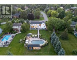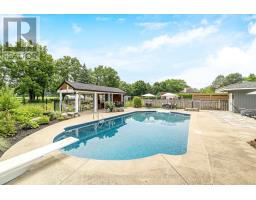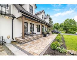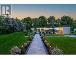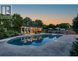 Your dream home awaits. Welcome to 10 Meander Close, a luxurious cape cod style home set in an exclusive enclave of estate homes in the charming community of Carlisle. Featuring over 4000 square feet of impeccably designed, finished living space, 6 total bedrooms, 5 bathrooms, & incredible backyard oasis with in-ground pool, hot tub, cabana, gazebo, fire-fit, & greenhouse. White oak hardwood flooring on the main & second level, with matching wood staircase with wrought iron spindles, sophisticated designated office, romantic formal dining room, & sunken living room with focal brick wood fireplace & custom built shelving. The stunning white kitchen features black accents, gold hardware, granite counter tops, 10 ft centre island, 10 ft long walk-in pantry, & high-end appliances. Large mudroom off the kitchen, ideal for family storage with garage entry. Upstairs, 5 large bedrooms, 4 share 2 resort like bathrooms, & the primary has an expansive 5 piece ensuite. Large dressing room in the primary with built-in shelving with glass doors. Convenient upper level laundry room & hallway balcony overlooking the stunning backyard. This home has been tastefully renovated with gorgeous feature walls, wainscotting, crown moulding, upgraded lighting, built-in cabinetry & so much more. The finished basement features a glass encased theatre room, extra bedroom with access to 4 piece bath, & plenty of storage space. Take the back sliding doors to the backyard retreat with incredible hardscape, gardens, & outdoor lighting. Jump into the hot tub on those cold winter nights, or walk the path to the pool area with plenty of space for lounging, dining, & entertaining. Custom cabana, fire-pit, gazebo, & state of the art greenhouse to keep the whole family entertained throughout the summer. The curb appeal is remarkable, with hundreds of thousands spent on hardscape & lush gardens both in the front & back of the home. Full irrigation system with 15 zones. Shows 10++. (id:50886)