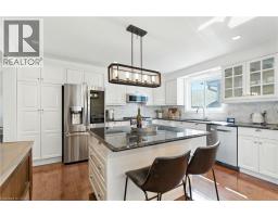 Beautifully updated three-bedroom home on Hamilton Mountain, offering nearly 2,200 square feet of living space! Tucked away on a quiet family-friendly dead-end street, this home is steps from St. Teresa of Calcutta Catholic Elementary and Lincoln Alexander School, with a scenic walking trail at the other end. Just minutes to the Linc, Red Hill, shopping, transit, and more—this location truly has it all. Inside, the home features a large family room with cathedral ceilings, a wood-burning fireplace, and abundant natural light—perfect for relaxing or entertaining. The main level also offers hardwood floors, a spacious living and dining area, kitchen with stainless steel appliances and a centre island, plus a powder room, all designed for comfort and convenience. Garden doors lead out to the maintenance-free yard, where you’ll enjoy a large composite deck with glass railings, a covered hot tub area, a propane firepit, and a natural gas line for your BBQ or future outdoor kitchen. Upstairs, the spacious primary bedroom features a walk-in closet and three-piece ensuite, complemented by two additional generously sized bedrooms and a four-piece main bathroom, all equipped with custom blackout blinds. Plenty of natural light and thoughtful finishes make the upper level comfortable and functional. The basement provides a flexible living space with separate entrance and drywall already in place, ready for your personal touches. Parking and storage are a breeze with a double-car garage featuring 60-ampa service and an electric car charger, plus a concrete double-wide driveway. Updates include roof (2020) Fridge and Stove (2023), a tankless water heater (2022), and new A/C (2022) for added peace of mind. Don’t be TOO LATE*! *REG TM. RSA. (id:50886)