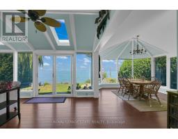 GRIMSBY BEACHFRONT WITH REMARKABLE LAKE ONTARIO AND GTA SKYLINE VIEWS Welcome to an exceptional private beachfront home in Grimsby, where postcard-perfect Lake Ontario and GTA skyline views are a daily reality. The traditional center hall plan leads you into an elegant living room, complete with a cozy gas fireplace and unobstructed water views. The spacious kitchen features an abundance of cabinetry, while the breathtaking 500 sq ft, four-season sunroom serves as the home's centerpiece, offering wall-to-wall windows and ever-changing vistas.Upstairs, the primary bedroom suite is a private sanctuary with a walk-in closet and a three-piece ensuite, which features a custom glass shower and stunning views. Two additional, generous bedrooms and a four-piece bathroom complete the upper level. Downstairs, the finished basement provides a custom wine cellar, a large recreation/media room, and a built-in wet sauna with a two-piece bathroom. The true masterpiece is the meticulously landscaped backyard, which offers multiple entertaining areas, including a patio, a hot tub, and your own private beachperfect for swimming, kayaking, or paddleboarding.This lakeside retreat also includes a single-car garage, double-wide parking for four cars, and easy access to the QEW, YMCA, and multiple schools. Come experience picturesque sunsets and a remarkable waterfront lifestyle. (id:50886)