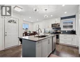 Beautifully updated 3+1 bdrm 4-level backsplit in quiet family-friendly court in Hamilton's desirable Templemead neighbourhood! Charming home blends style & functionality offering perfect sanctuary for growing families. Front porch W/charming arches welcomes you into the home. Heart of the home is stunning kitchen renovated in 2019 W/Caesarstone counters, subway tile backsplash, full-height white cabinetry, mostly S/S appliances & 2 pantry cupboards. Centre island W/pendant lighting make it a hub for casual meals & entertaining. Adjoining dining area easily fits large table for formal gatherings! Luxury cushioned vinyl plank floors provide warm & soft feel underfoot, leading to living room where newer hardwood floors & bay window let natural light in. This open-concept space is ideal for relaxing & hosting guests. A few steps up reveal 3 bdrms W/closet space & natural light. Primary bdrm offers direct access to cheater ensuite W/large vanity & shower/tub. Lower level incl. rec room W/brick wood-burning fireplace & sizable window creating warm atmosphere. There is 2pc bath & space for an office or a 4th bdrm. Down a few more steps is a massive versatile room—perfect for playroom, gym or hobby room. Utility room offers laundry & storage. Completing this level is 28ft cold room. Sep entrance to bsmt opens the door to creating future in-law suite! Outside enjoy oversized back deck W/natural gas line, ideal for BBQs & lounging. Cool off in above-ground heated saltwater pool or unwind around firepit area. Fully fenced yard surrounded by gardens ensures a safe spot for kids & pets. Shed for storage. Updates incl: 2024 LG washer/dryer, 2019 power vented HWT, 2018 furnace & AC, updated electrical panel & approx 3yr old pool liner—providing peace of mind for yrs to come! Steps from Templemead Elementary School & park. Mins from shopping, groceries, restaurants, banks & more. Less than 10-min drive to 403, commuting to Burlington, Oakville, Mississauga & Toronto is a breeze! (id:50886)