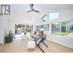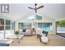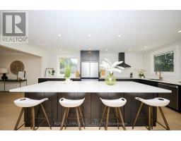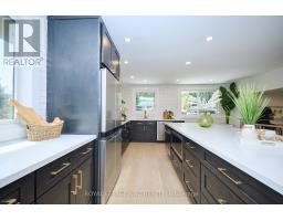 Welcome to this stunning, fully renovated multilevel detached home situated in a prestigious neighborhood on a quiet cul-de-sac w/In-Law Suite- perfect for multigenerational living! Sitting on an expansive 70-ft lot, this property is a true showpiece inside and out that has been completely renovated within the previous year! Step into the heart of the home and be captivated by the custom designer kitchen, featuring a 10-foot island, quartz countertops, a striking tiled backsplash, and high-end appliances. The open-concept design flows seamlessly into the elegant dining area and living room, where a gas fireplace creates a warm, inviting atmosphere. Throughout the main level, you'll find engineered wide-plank white oak hardwood flooring. From the living space, step into the newly built sunroom, a true highlight, w/vaulted ceilings and floor-to-ceiling Magic Windows that fold open on both sides to create an airy indoor-outdoor experience. This level also offers a stylish powder room, a convenient main-floor laundry, + inside entry to the double car garage and EV Car Charger (+newer 200 amp panel). Upstairs, discover 3 generously sized bedrooms, including a primary retreat w/dbl closets, all served by a stunning 5 pc bath w/double sinks, quartz counters & modern finishes. The lower level offers a 4th bedroom w/ above-grade windows, matching vinyl plank flooring & dbl closets + office & recroom. The basement is beautifully finished with a brand-new second kitchen w/a cozy coffee nook, 3pc bath, cold cellar, utility room & rough-in for a second laundry. Outside, the backyard is a private oasis with a 16 x 32 chlorine pool (liner replaced in 2019), ideal for summer entertaining. This is a stunning home that combines luxury and style in one of the areas most desirable locations. Eaves will be painted black. Magic windows all have B/I blackout blinds! (id:50886)