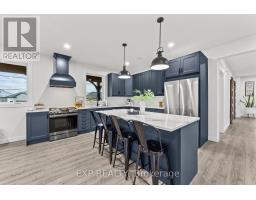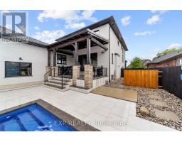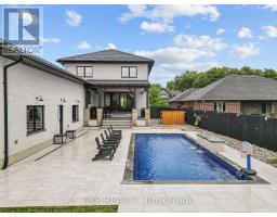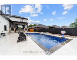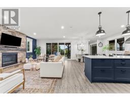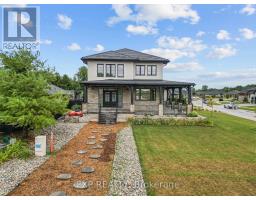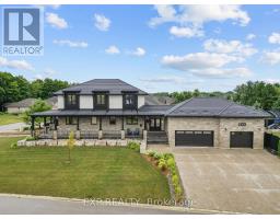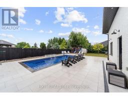 Welcome to a home where modern design meets small-town living, built just five years ago by Marvel Stone & Masonry. This stone-and-brick masterpiece was crafted with every detail in mind from its timeless curb appeal to the wrap-around porch that sets the tone for peace, comfort, and connection. Inside, the main floor blends elegance and functionality. A bright, spacious kitchen with walk-in pantry is perfect for family gatherings, while the family room with fireplace offers a cozy retreat. A large office or bedroom with countryside views provides the ideal workspace, and built-in speakers add a touch of everyday luxury. Upstairs, you'll find four additional bedrooms that are thoughtfully placed on the same level, including a luxurious primary suite with spa-inspired ensuite, his-and-hers sinks, and a deep soaker tub. The three additional bedrooms feature oversized closets, built-ins, and window benches, while the second-floor laundry room makes daily routines effortless.The lower level is designed for entertainment and function, complete with a movie theatre, gym, games area, childrens recreation space, full bath, and a 16-foot cold cellar. Step outside to your private backyard oasis: a heated in-ground pool with bench seating, stone patios, BBQ area, water feature, built-in play equipment, playhouse, and garden boxes all surrounded by mature trees and low-maintenance landscaping. Evenings on the porch or nights by the fire create a lifestyle thats hard to leave behind. Practical features include: an oversized gas heated three-car garage with car-lift wiring, parking for six, fully fenced yard, tinted windows throughout the home, spray foam insulation, professional-grade security cameras, drainage system, sump pump with battery backup, central vacuum, and Metal Roof with a transferable warranty. Future-ready upgrades are already in place, including wiring for a hot tub, gas generator switch, BBQ hookup, and fireplace supports on the pool patio. (id:50886)