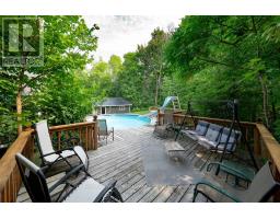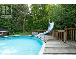 Welcome to Bolton Landing! Whether you're dreaming of a peaceful cottage escape or planning your next chapter in a year-round home, this private oasis has it all. Tucked away on nearly 5 acres of wooded serenity, just a peaceful stroll or short quad ride to the deeded access at Bolton Lakes with a private community beach and dock, this property blends nature, comfort, and convenience. Inside, enjoy an open-concept layout with cozy in-floor heating, a propane fireplace, and a charming wood stove in the kitchen. The private primary suite with ensuite bath offers a restful retreat, while a separate bunkie provides extra space for guests or teens. Step outside and unwind in your pool and sauna, host family gatherings on the expansive deck, or tinker away in the detached garage, workshop, and drive shed. There's even a 5th wheel trailer included for overflow visitors, with no shortage of space for family and friends. Located just 15 minutes from Highway 7 and the quaint village of Sharbot Lake, this property is ideal for anyone seeking a balanced lifestyle surrounded by nature with modern comforts and community perks. Live here year-round or retreat on weekends, its your choice. Come see what peaceful living really looks like. (id:50886)