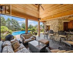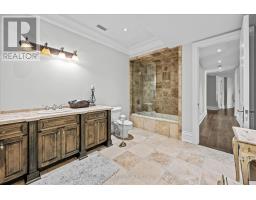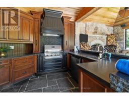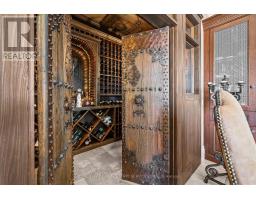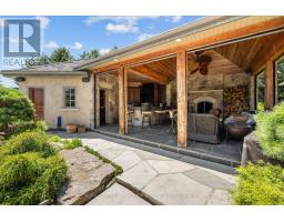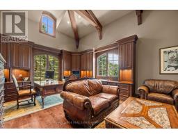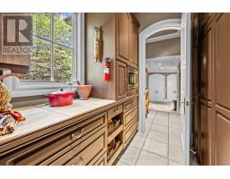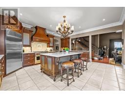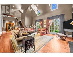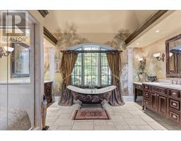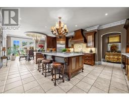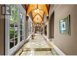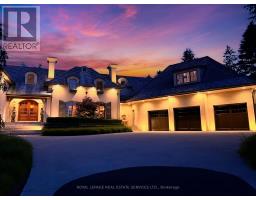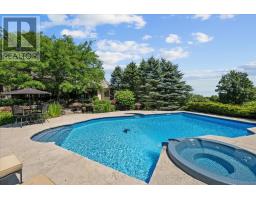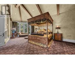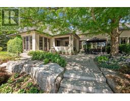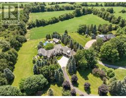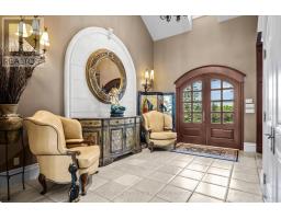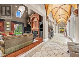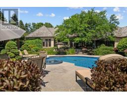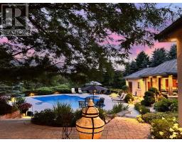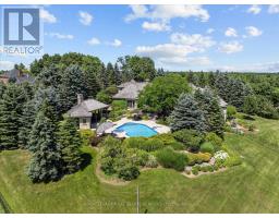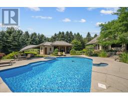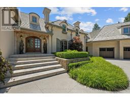 STONEGATE MANOR - AN ARCHITECTURAL MASTERPIECE! Nestled on 2.5 acres of manicured grounds behind private gates in prestigious Whispering Pines Estates, Stonegate Manor is a palatial estate crafted by an award-winning builder. A picturesque pond with fountain greets you at the foot of the driveway, setting the tone for timeless French Manor-inspired elegance. A grand foyer with 17.5-foot cathedral ceiling and hand-painted mural opens to a living room with 18-foot vaulted ceiling, two-storey cherrywood gas fireplace and expansive windows flooding the space with natural light. The chefs kitchen features a 48" Wolf gas range, Sub-Zero fridge, Miele dishwasher, servery, and three sets of French doors opening to a private courtyard. The formal dining room connects to a wine cellar with antique Asian doors, while a private office with 15-foot vaulted ceiling, gas fireplace and built-ins offers a refined workspace. The luxurious primary suite boasts a 14-foot vaulted ceiling, courtyard walkout, gas fireplace, walk-in closet, gym, and spa-inspired 7-piece ensuite with clawfoot tub and steam shower with built-in chaise. A lofted entertainment area features a 14-foot vaulted ceiling, wet bar, pool table, theatre setup, and powder room. The finished lower level includes heated floors, full kitchen, 3 bedrooms, 2 baths, and walkout to a private patio - ideal for multi-generational living. Resort-style amenities include an inground saltwater pool with integrated hot tub, standalone hot tub, koi pond, and an additional pond with fountain. The cabana features a wood-burning fireplace, kitchen, seating, automatic mosquito screens, 2-piece powder room, and change room. Additional highlights: elevator to all levels, Crestron Home Automation, oversized 3-car garage, and new concrete/asphalt driveway. A rare offering of elegance and lifestyle - just minutes north of Campbellville! (id:50886)