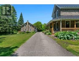 Timeless Stone Estate on 74 Acres of Pure Charm. This property includes a 3 Bedroom, 2.5 bath main home and a 3 Bedroom, 2 bath Guest house. Step back in time without giving up a single modern luxury in this stunning stone home originally built in 1876, beautifully preserved and thoughtfully upgraded to blend historical character with todays conveniences. This property also has a 3 Bedroom/2 Full Bath Guest House with it's own Furnace and Electrical. Nestled on 74 private acres with meticulously cleared trails (approx 5km worth!), this breathtaking estate is truly one-of-a-kind. From the moment you step inside, you'll be greeted by original pine floors, old time character and a warm, inviting atmosphere. The main floor boasts a cozy living room with a wood-burning stove, perfect for crisp evenings, and a powder room cleverly tucked beneath the stairs. The former summer kitchen has been fully insulated and transformed into a chefs dream complete with granite countertops, reverse osmosis system, and a classic gas AGA stove offering additional heat and featuring two burners and FOUR ovens, ready to handle anything from Sunday roasts to holiday feasts. The kitchen entrance also has heated flooring. Upstairs, you'll find three bedrooms, including a private primary suite with its own staircase, a tranquil ensuite bath with heated floors, and thoughtful details throughout. The second level also features a 4-piece bathroom, plus a unique Jack and Jill bathroom offering smart storage and a hidden washer/dryer for added convenience. The exterior is just as dreamy, featuring a newly built porch and railing, 20 x 40 in-ground pool with new stonework, liner, and diving board, surrounded by a relaxing gazebo and tranquil pond. There is a pool heater but not connected or installed (though never used by the sellers), making it easy to extend swim season if desired. (id:50886)