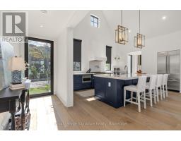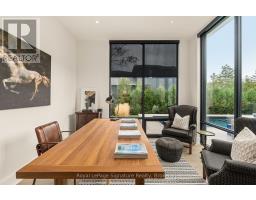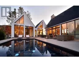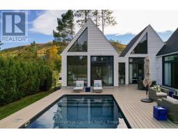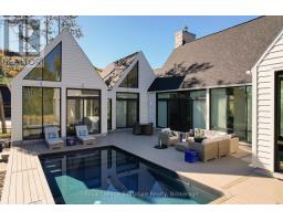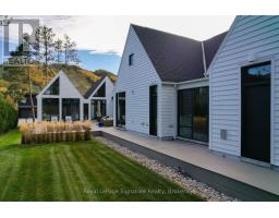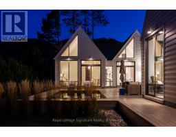 Nestled in the exclusive Peaks Bay community, this stunning modern bungalow offers over 5,000 square feet of finished living space, thoughtfully designed for comfort, style, and connection to nature. This custom-built home reflects craftsmanship and quality in every detail - from vaulted ceilings and Restoration Hardware fixtures to the warmth of wide-plank hardwood floors and a double-sided limestone fireplace that anchors the heart of the home.The open-concept kitchen, dining, and great room flow effortlessly onto an expansive 1,200-square-foot deck - perfect for entertaining after a day on the slopes or relaxing by the saltwater pool on a summer afternoon. The custom kitchen features Hanstone quartz surfaces, JennAir appliances, a walk-in pantry, and a servery with a wine fridge, making it ideal for gatherings with family and friends. The primary suite is a true sanctuary with a spa-like ensuite, his-and-hers showers, and a freestanding tub. Three additional bedrooms, an office with floor-to-ceiling windows, and a finished lower level with a gym and full bath provide space for everyone to unwind. Set on a beautifully landscaped lot between the mountains and the bay, this home captures the essence of the Blue Mountains lifestyle. Walk or bike to the crystal-clear shores of Georgian Bay, enjoy skiing at nearby Georgian Peaks, Alpine, Craigleith, and Blue Mountain resorts, or explore the area's hiking and cycling trails right from your door. Whether you're hosting après-ski evenings by the fire or quiet mornings with coffee on the deck, 101 Deer Lane is the perfect place to call home. (id:50886)