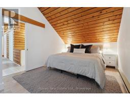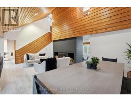 This is chalet life, the way it should be. Tucked among the trees in Georgian Woodlands, this mid-century modern retreat offers everything you need for four-season living or weekend escapes. With 4 bedrooms, 1.5 baths, and an oversized garage complete with a heated wax room for your gear, this home is equal parts comfort and character. Step into the great room and you are instantly greeted by sunlight pouring through large windows, cathedral ceilings overhead, and a wood-burning fireplace that begs for après-ski stories. The open-concept kitchen and dining space is made for slow mornings and long evenings, and there are multiple walk-outs to the deck for when fresh air calls. You will love the extra living room on the main floor, perfect for games night, movie marathons, or warming up after a winter dip in the hot tub. Upstairs, the vaulted-ceiling primary bedroom is bright and welcoming, with three more bedrooms and a 4-piece bath completing the picture. If it looks like all you need to bring is your clothes, you might be right-the furniture is negotiable, making it even easier to skip the setup and start enjoying life here right away. In less than 15 minutes on foot, you can be at Northwinds Beach or the base of Craigleith Ski Club. Whether you are a member at Craigleith or Alpine, or a pass holder at Blue, this location keeps you close to the action while still feeling like your own private retreat. And with Thornbury and Blue Mountain Village just a short drive away, the best of the area is always within easy reach. (id:50886)