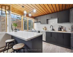 This is chalet living, made for winter. Surrounded by mature trees in Georgian Woodlands, this mid-century modern retreat offers comfort, warmth, and the convenience you want for a full ski season. With 4 bedrooms, 1.5 baths, and an oversized garage complete with a heated wax room, the home is designed for easy days on the hill and relaxed evenings at home. The great room is the heart of the space, with sunlight from large windows, cathedral ceilings, and a wood-burning fireplace that sets the tone after a long day on the slopes. The open-concept kitchen and dining area is ideal for slow winter mornings, shared meals, and gathering with friends. Walk-outs to the deck let you enjoy crisp air and clear skies all season long. A second living room on the main floor adds flexibility for games, movie nights, or warming up after a winter soak in the hot tub. Upstairs, the vaulted-ceiling primary bedroom feels bright and inviting, with three additional bedrooms and a 4-piece bath completing the upper level. The home can be offered furnished, making arrival effortless and allowing you to settle in for the season without the usual setup. Location is everything in winter, and this one delivers. You can walk to the base of Craigleith Ski Club or Northwinds Beach in under 15 minutes, with Alpine and Blue Mountain also close by. Thornbury and Blue Mountain Village are just a short drive away, giving you quick access to dining, shops, and winter events throughout the area. Available Mid December through Mid April. (id:50886)