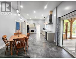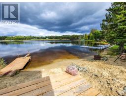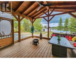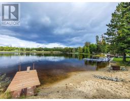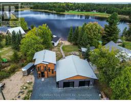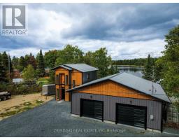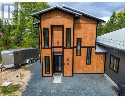 Waterfront Escape! This house sits on Childs Lake and is truly special, both inside and out. It has a heated attached garage, large gazebo, and its unique design is eye-catching from every angle. On the main floor, you'll find the primary bedroom (With a patio door showcasing the lake), a full bathroom showcasing a jacuzzi tub and a laundry area, and a large open space that combines the kitchen, dining, and living room. The main living area's 10-foot ceilings make a bright and airy space. The kitchen comes with beautiful quartz countertops and all the necessary appliances. Another set of patio doors leads you to a screened-in gazebo, your own private spot to unwind and take in the wide-open views of the lake. Upstairs, there are two more bedrooms and a half-bathroom with two sinks. Outside, there's a separate lakeside cabin that has an electric sauna. Attached is an insulated shed that you can adapt for various uses. An additional bunkie, already set up with plumbing for a shower, a sink, and laundry connection further adds to the versatility of the property. Built in 2022, this home also features a durable metal roof, a mix of wood and metal siding, a robust 200-amp electrical system ready for a generator, and heating powered by a natural gas boiler, and many other great features. (id:50886)