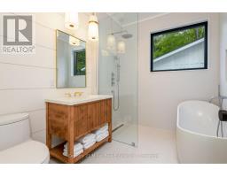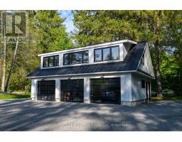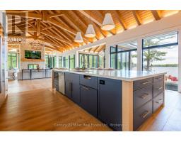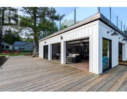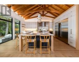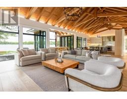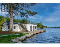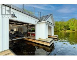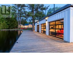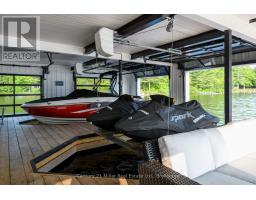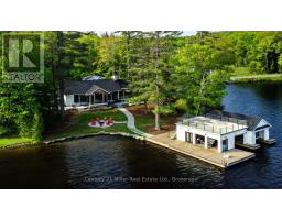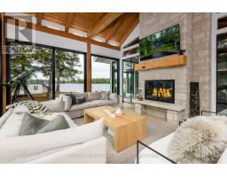 This luxuriously appointed, custom-built retreat is set on a spectacular level lot with over 500 feet of pristine waterfront, offering unmatched privacy, breathtaking sunset views, and the quintessential Muskoka lifestyle.Crafted by renowned Cobalt Custom Homes, every detail of this property exudes craftsmanship and elegance. The main cottage is a masterclass in refined cottage living, featuring vaulted open-beam ceilings, a dramatic double-sided limestone fireplace, and floor-to-ceiling windows that flood the space with natural light and deliver panoramic lake views.The gourmet kitchen is a chefs dream, fully outfitted with Wolf and Sub-Zero appliances, seamlessly flows into a generous dining area anchored by a massive harvest table ideal for entertaining family and friends, which is the heart of cottaging.The cottage offers 6 spacious bedrooms, comfortably accommodating up to 20 guests, including a private primary wing complete with a luxurious ensuite, expansive walk-in closet, and sliding doors to a serene private patio. An all-season Muskoka room invites you to enjoy the outdoors year-round in comfort. Additional guest accommodations include a charming 2-bedroom bunkie, providing friends and family with their own space to unwind. The 3-car garage features a beautifully finished loft above, equipped with a gym and additional sleeping quarters perfect for overflow guests or a peaceful retreat after a day on the water. A 2-slip boathouse with glass roll-up doors leads to a sprawling dock, ideal for swimming, sunbathing, and launching your next lake adventure. The elevated sundeck with glass railing offers a commanding view over the bay perfect for enjoying Muskoka's iconic sunsets with a glass of wine. Just a short boat ride to Bala for shopping and dining, or celebrate a summer night at The Kee. With year-round municipal road access, a drilled well, and a sandy lake bottom ideal for kids, this is a turn-key, four-season sanctuary. (id:50886)