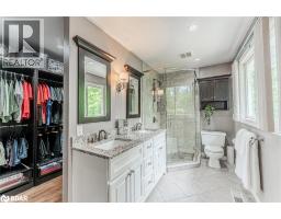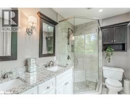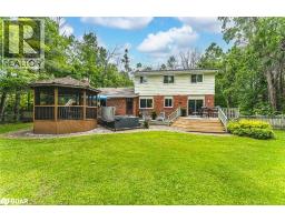 PRIVATE 1.7 ACRE RETREAT WITH A HOT TUB, BARN, FINISHED BASEMENT & ROOM TO ROAM! If your dream home includes acreage with exceptional privacy, your own barn, a serene backyard with a hot tub and tiered deck, and a spacious interior that actually feels like home, then 102 Tudhope Blvd is calling your name! Set on 1.7 beautifully treed acres, this well-maintained 2-storey offers the peace and space you crave with quick access to Lake Simcoe, parks, trails, and just 15 minutes to Orillia and Barrie for shopping, dining, and entertainment. Inviting curb appeal with a classic brick and aluminum exterior, a covered front porch, a winding driveway, and neatly landscaped gardens. Natural light fills over 2,500 sqft of finished space designed with function and comfort in mind. The large eat-in kitchen features granite counters, custom antique natural maple cabinets and crown moulding, pot lights, built-in appliances, a wet bar-style display with a sink, a dedicated desk station, and sliding doors to the yard. The formal dining room boasts a fireplace, brick surround, and wood panel accents, while the living room brings extra charm with pocket-style French doors and a large front window overlooking greenery. Three generous bedrooms include a primary suite with a walk-in closet and a 4-piece ensuite. The finished basement showcases a massive rec room, pot lighting, a fireplace, and space for games, movies, play, or workouts. This home truly shines outside with a multi-tiered deck, hot tub with new cover, screened wood gazebo, firepit area, and a large grass area backing on greenery. The detached barn offers room for storage, a workshop, or hobby space. Updates include the shingles (2014), furnace (2020) and water softener (2024), plus a Generlink transfer switch. Located on the school bus route for both public and Catholic boards, this property nails the lifestyle trifecta of space, serenity, and function, all wrapped in a setting that feels like home the second you arrive! (id:50886)