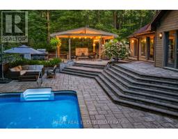 Imagine waking to the soft rustle of leaves from the Pinery Provincial Park, sipping your morning coffee on the back deck as deer wander just beyond your private fence line. This is more than a home - it's a sanctuary, a lifestyle, a rare opportunity to own one of the most secluded and amenity-rich properties in all of Grand Bend. Set on a lush, tree-lined lot in prestigious Huron Woods, 10219 Pinetree Drive is a meticulously maintained 4-bedroom, 3-bathroom smart bungalow that backs directly onto protected parkland. With deeded access to a private beach, exclusive use of the Huron Woods clubhouse and tennis courts, and walking trails to the Ausable River and Lake Huron, every day feels like a retreat.Inside, the home is a masterclass in comfort-meets-innovation. Geothermal heating and cooling keep things efficient year-round, while smart-home integration (lighting, sound, security, hot tub, sprinklers) means everything is at your fingertips. The fully renovated kitchen and bathrooms blend modern elegance with thoughtful functionality - perfect for cozy mornings and vibrant entertaining alike. Picture this: summer afternoons around the natural gas fire pit, hosting friends by the built-in outdoor kitchen and heated pool. Winter evenings with family curled up by the fireplace. Movie nights in the lower-level bar lounge, complete with a keg tap and wine fridge. Every room, every corner, is designed to inspire connection, relaxation, and joy. (id:50886)