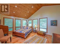 Enjoy your private retreat on this secluded point with over 455 ft of shoreline on beautiful Big Bob Lake, with a sensational South West view. This charming 3 bedroom home features open concept living/dining/kitchen area. You will be impressed with the walkout to a large double tiered decking system and great lake views. The large primary bedroom is all ready to relax in, with a huge walk-in closet and 2 pc ensuite. This charming home is perfect for resting and entertaining friends and family. The private point includes 2 well treed acres and features 2 separate docks at the waterfront being ideal for all your favorite water activities. BONUS BONUS... this property also comes with a share in a nearby boat launch/water access, a rare feature on the lake. Make an appointment today for your private viewing, don't miss out on this fantastic opportunity to own your own piece of heaven just minutes from the beautiful village of Minden. (id:50886)