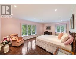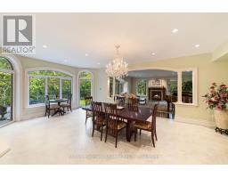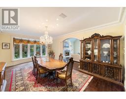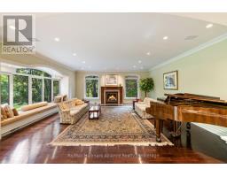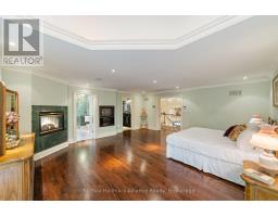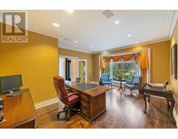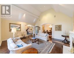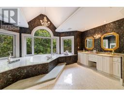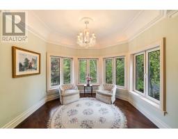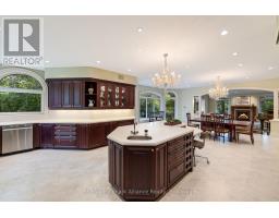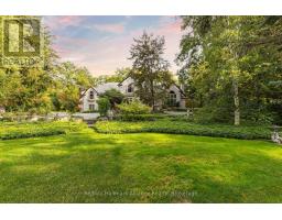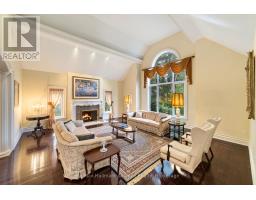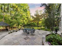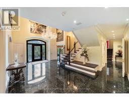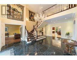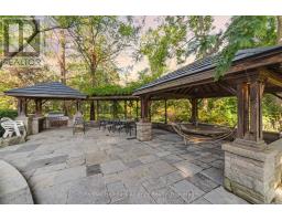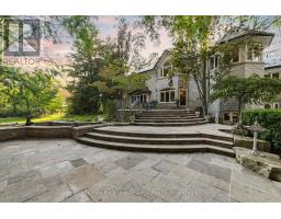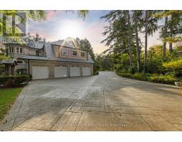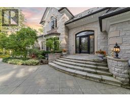 A Rare Executive gated 1.39-acre ravine estate in Morrison sought after community timeless elegance meets modern luxury this residence provides unmatched privacy, lush landscaping, & refined outdoor living. Through the custom 8-foot beveled glass entry doors, the soaring foyer sets the tone with emerald pearl granite floors, a handcrafted Austrian crystal chandelier on motorized lift, & a sweeping French Provincial staircase with wool Victorian Tapestry runner. The main floor boasts elegant formal living & dining rooms with hand-carved marble fireplaces, cathedral ceilings, plaster mouldings, & Palladian windows framing ravine views. A richly appointed library & office feature maple plank flooring, crown moulding, & custom draperies. The family room offers panoramic vistas & a mahogany fireplace, while the chefs Hawthorne kitchen impresses with cherry cabinetry, granite surfaces, premium appliances, & a walkout to the terrace. Upstairs, the luxurious primary suite includes a two-way fireplace, custom lighting, & a walk-in closet with attic access. The spa-inspired ensuite offers heated floors, Jacuzzi air tub, granite shower, & Strass crystal lighting. Three additional bedrooms each enjoy private ensuites, cathedral ceilings, & custom finishes. A versatile great room with terrace access & a full laundry suite complete this level. The lower level is an entertainers dream with a billiards & games room, full walnut bar, gym, media lounge, & spa retreat with sauna & steam shower. Radiant heated floors, & abundant storage enhance the space. Outdoors, the property is equally breathtaking with two stone gazebos joined by a large pergola, extensive walking paths, & a serene koi pond and a Japanese-inspired garden creating a private resort-like escape. With 4+1 bedrooms, 9 bathrooms, elevator access to all levels, multiple terraces, & a gated circular driveway, this estate offers over 10,000 sq. ft. of refined living in one of Oakville's most coveted neighbourhoods. (id:50886)