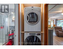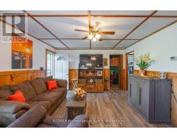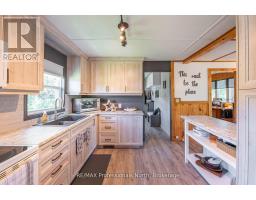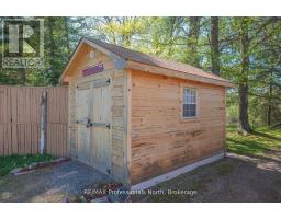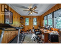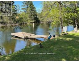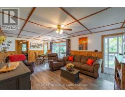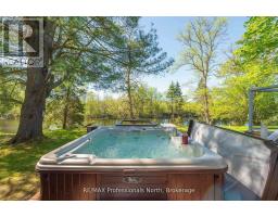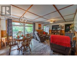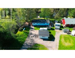 Gull River Year Round Home or Cottage! This four season home is charming with a fantastic view of the Gull River and sunsets. Minutes south of Minden it is easy to get to on this year round private road. The spacious 21 x 13 living and dining area open onto the front deck with the hot tub off to the side. Imagine sitting in the hot tub year round enjoying the natural setting, no neighbours across the river and watching the sunset!! The kitchen was updated recently and offer lots of storage and lots of prep area. The island has a butcher block and the matching countertop as well, this is portable. The mudroom is spacious when you arrive home. The woodstove in the family room keeps everyone warm in the winter months plus you have the propane forced air furnace and electric baseboards if you need them. The smallest bedroom is used as a walk-in closet now but could be changed back. The yard around the house is level with mature gardens, a fire pit, a utility shed, a craft shed and a woodshed. The double garage has a work bench with an electric heater above it. There is a full height basement under the family and bedroom for the water treatment system and extra storage. One of the best parts is you can leave the dock in the water all year long!! Steps into the river as well at the floating dock. Boat into town for live entertainment or down to Gull Lake for miles of boating. (id:50886)