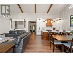 Welcome to your secluded Muskoka hideaway nestled amidst towering pines and the rugged beauty of the Canadian Shield. This just-built custom 4-bedroom fully furnished bungalow offers unparalleled privacy on a sprawling 4.32-acre lot. Step inside to discover a thoughtfully designed open-concept layout, where the kitchen, dining, and living areas flow effortlessly together. The kitchen boasts custom 10' high cabinetry, quartz countertops, and a farmhouse-style island sink, while the adjacent living room features a cozy propane fireplace framed by floor-to-ceiling surround and a convenient bar cabinet with quartz countertops and bar fridge. Retreat to the primary bedroom suite, complete with a 4-piece ensuite, vaulted ceiling, and private walkout to the deck, offering a quiet spot to enjoy your morning coffee amidst the trees. Three additional bedrooms provide ample space for family or guests, while a 4-piece main bath and 2-piece powder room ensure convenience for all. Outside, the expansive deck beckons for al fresco dining and relaxation, while a covered porch at the back offers shelter in any weather. For the ultimate in versatility, a detached 3-car garage with a loft provides additional living space, complete with a bedroom, 3-piece bath, and living area, perfect for guests or a home office. Never worry about power outages with the property's large Solar Grid, 12kw inverter, 20kw Batteries and 22.5kw auto start propane Generac Generator, ensuring peace of mind year-round. With ample room to roam and explore, you can create your own trails through this wilderness retreat, embracing the true essence of Muskoka living. Conveniently located near several lakes and Georgian Bay, outdoor enthusiasts will delight in endless opportunities for boating, fishing, golfing, skiing, and snowmobiling, while nearby stores and restaurants offer all the amenities you will need. Seller will consider a VTB to qualified buyers. (id:50886)
