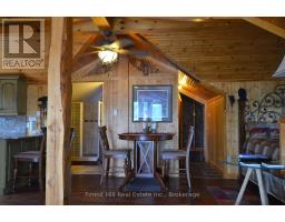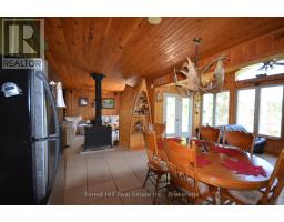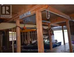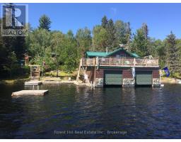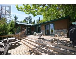 Embrace a serene lifestyle in this captivating cottage located in the idyllic setting of Teachers Bay/RabbitLake. Just a brief 10-minute boat ride from a secure dock, conveniently situated where you park your car, this authentic north-inspired retreat invites you to escape the everyday hustle and bustle. The fully winterized main cottage spans over 1400 square feet, designed for low maintenance and adorned with a steel roof, new solar panels, and an attractive hard iboard and rock exterior. Step inside to discover four generously sized bedrooms, a full bath, a main living room featuring a propane fireplace, a family room with a cozy wood-burning stove, and a spacious, stunning kitchen. Enjoy the simple pleasures of life on the multilevel deck, whether it's sipping your morning coffee or relishing the sunset. The boathouse suite, essentially a cottage on its own, offers 800 square feet of comfort, complete with a full kitchen, bath, a living room showcasing a propane log set fireplace, and a welcoming bedroom. Winterized for year-round use, it also boasts a private deck overlooking the water. Keep your boats and water equipment sheltered in the multiple-slip boathouse.The property's exceptional features include a dual water filtration system Trojan UV Max, in-wall cell, an automated solar/electrical system with an auto-programmed propane backup generator, and satellite T.V.Revel in the finer details with Carlisle antique plank flooring, granite counters, and rugged property backing onto crown land. The ownership of the waterfront lot beneath the dock and boathouse adds to the allure of this truly exceptional haven. (id:50886)