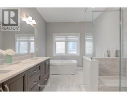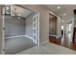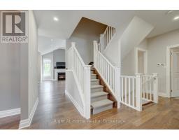 Welcome to this spectacular family home located in the highly sought-after Warbler Woods neighbourhood in southwest London. Backing onto scenic walking trails, this home offers the perfect blend of nature, luxury, and convenience. Just 15 minutes from Highways 402/401, Western University & downtown London, it's an ideal location for families and professionals alike. Key Features: Bedrooms: 3+2 spacious bedrooms. Bathrooms: 3.5 beautifully appointed baths, heated floors & pocket doors. Main Floor: Open concept with rich hardwood flooring, upgraded lighting and lots of pot lights, large windows, and cathedral ceilings in the family room. Kitchen: Gourmet kitchen featuring quartz countertops, dark 8-foot island, pots & pans drawers, slide-out spice drawers, under-valance lighting, and top-of-the-line Jen Air appliances including gas stovetop, wall oven, and built-in microwave. Primary Retreat: Main floor primary bedroom with large walk-in closet and a 5-piece spa ensuite boasting quartz counters, double sinks, heated floors, hot tub, and glass shower. Upper Level: Two generously sized bedrooms with a 5-piece main bath featuring double sinks. Basement: Approximately 1,460 sq ft of finished space with a large bedroom and an office, full bath and a wet bar. Total 3600 sq ft finished living space. Don't miss out on this incredible opportunity! (id:50886)