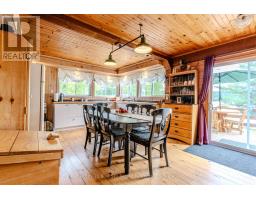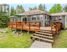 Nestled in the picturesque wilderness of Temagami, Ontario, this enchanting three-bedroom cottage offers a tranquil retreat on the pristine shores of Rabbit Lake. Accessible only by boat, this secluded haven provides an idyllic off-grid living experience, perfect for those seeking peace and privacy in nature. The cottage boasts three well-appointed bedrooms. Natural wood finishes and large windows create a warm and inviting atmosphere. The open-concept living area is designed for relaxation and togetherness. A wood-burning stove and propane fireplace provide warmth and ambiance, while large windows and sliding doors let in ample natural light and offer stunning lake views. The kitchen is well equipped with modern and includes a propane stove and refrigerator, ensuring you have all the comforts of home while living sustainably. The expansive deck is perfect for outdoor dining, lounging, and soaking in the serene beauty of Rabbit Lake. The cottage is equipped with a robust solar power system, providing reliable electricity for all your needs. Backup generators ensure uninterrupted power supply. This three-bedroom off-grid cottage on Rabbit Lake is a rare gem, offering a perfect blend of rustic charm and modern amenities. With its serene location, sustainable living features, and various outbuildings including a heated outhouse and a shower house, it is an ideal retreat for nature lovers and those seeking a peaceful escape from the everyday world. Whether you are looking for a seasonal getaway or a year-round residence, this property promises a unique and fulfilling lifestyle in the beautiful wilderness of Temagami, Ontario. (id:50886)