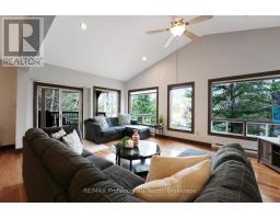 Surrounded by towering trees and rich natural beauty, this 4-season cottage on Long Lake offers a peaceful escape just 10 minutes from the Village of Haliburton. Enjoy excellent cell and internet service along with convenient access to local amenities like shopping, dining, schools, and healthcare. Set on a tiered lot, the property features a deep-water docking area, perfect for swimming, fishing, and boating on the clean waters of Long Lake and its adjoining Miskawbi Lake. Wildlife lovers will appreciate frequent visits from birds, deer, turtles, and mink, along with vibrant displays of red trilliums, perennials, and wildflowers. Inside, the 3-bedroom, 1-bathroom cottage boasts approximately 1,400 sq ft of open-concept living space with vaulted ceilings, a woodstove for year-round comfort, and large picture windows framing the lake view. The spacious living and dining area flows seamlessly to a lakeside deck and covered patio ideal for entertaining in any weather. A fire pit area completes the outdoor experience, making it easy to relax under the stars. Whether you're seeking a private year-round home or a cottage retreat with all the comforts, this property offers the best of cottage country living. (id:50886)